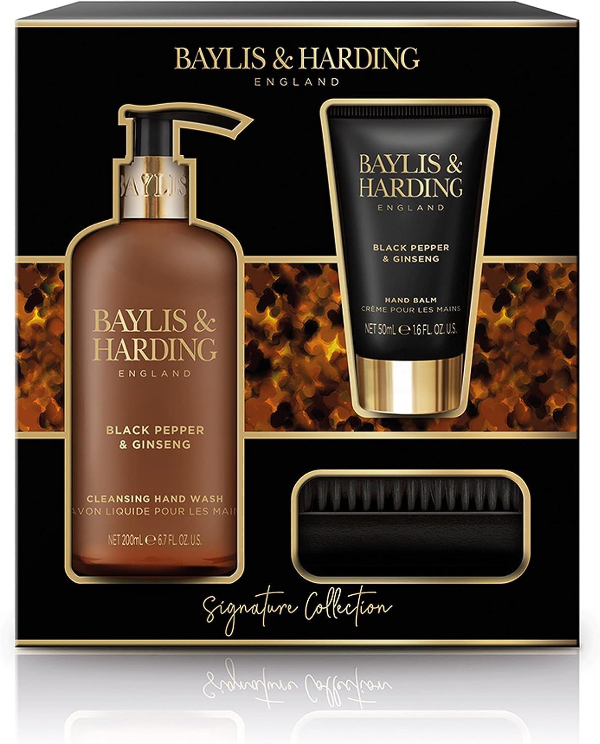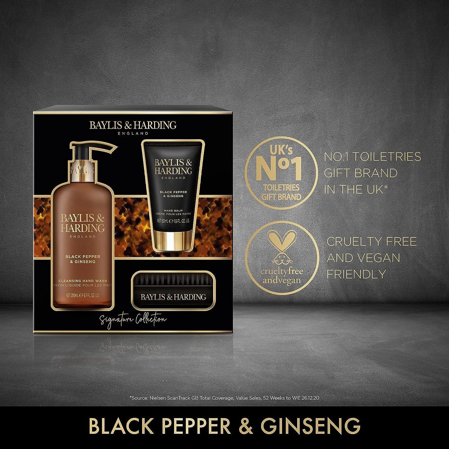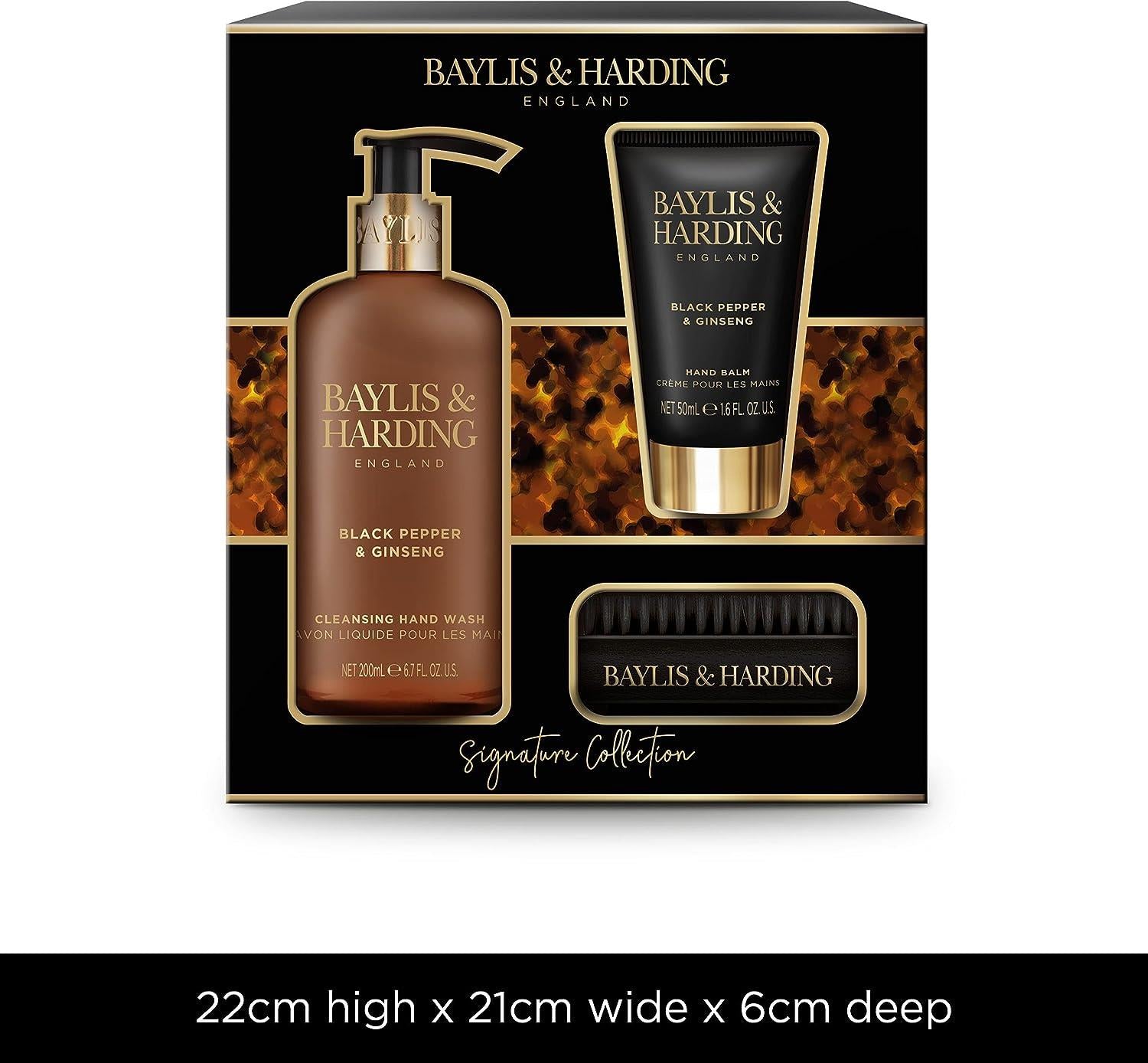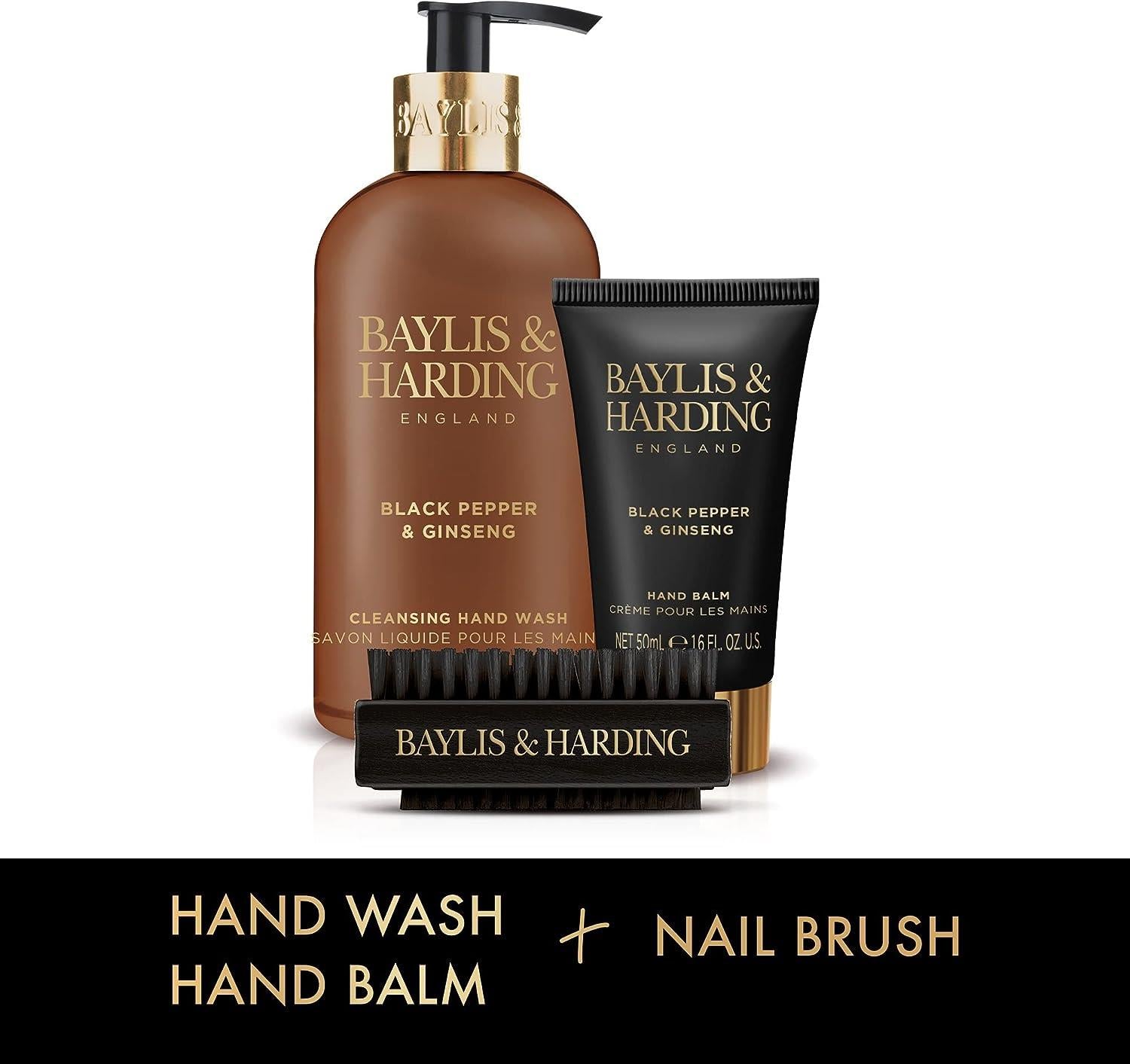 Baylis & Harding Signature Men's Black Pepper & Ginseng Hand Care Gift Set, Containing: 300ml Bottle Hand Wash, 50ml Tube Hand Balm, Nail Brush