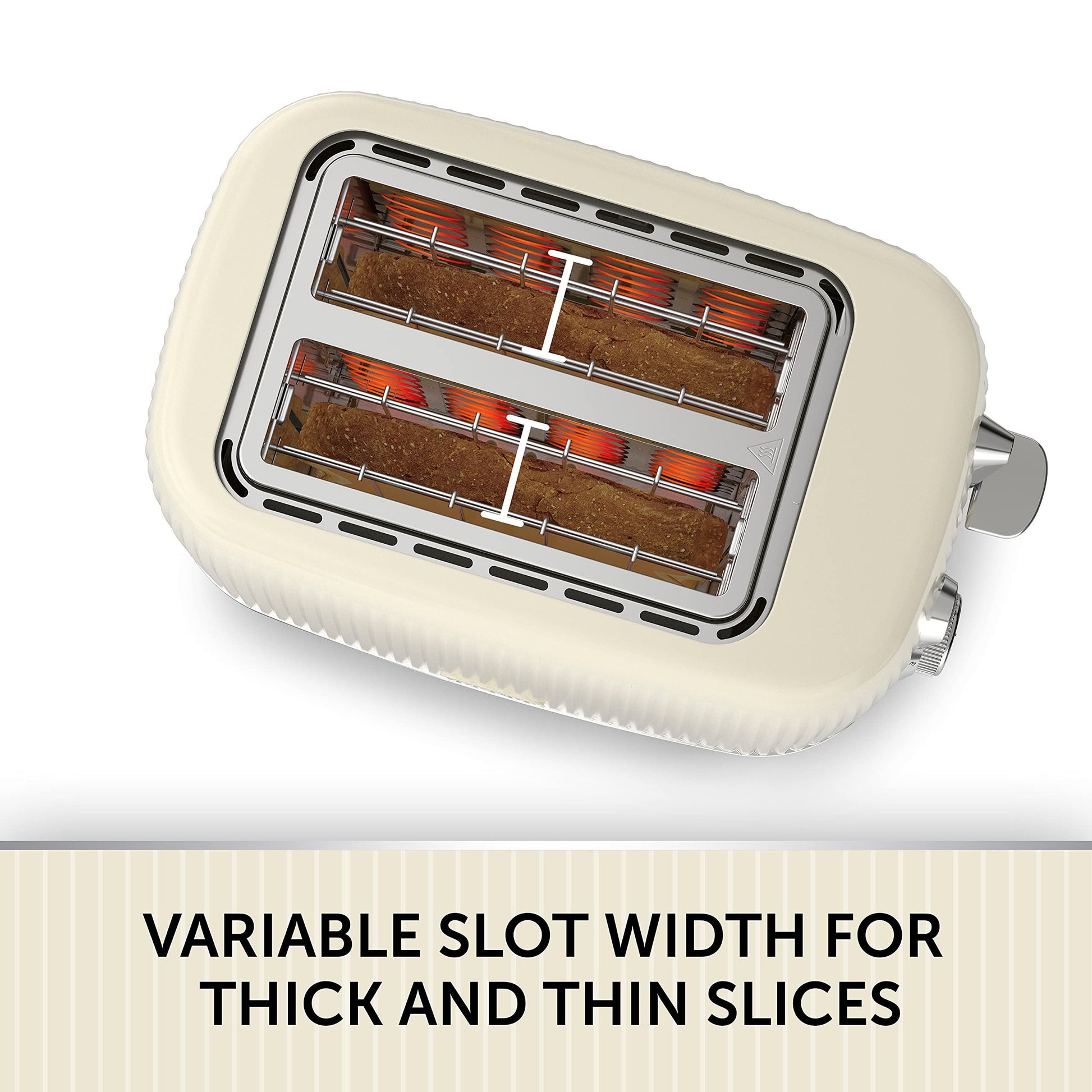Variable width bread slots allow for both thick and thin slices