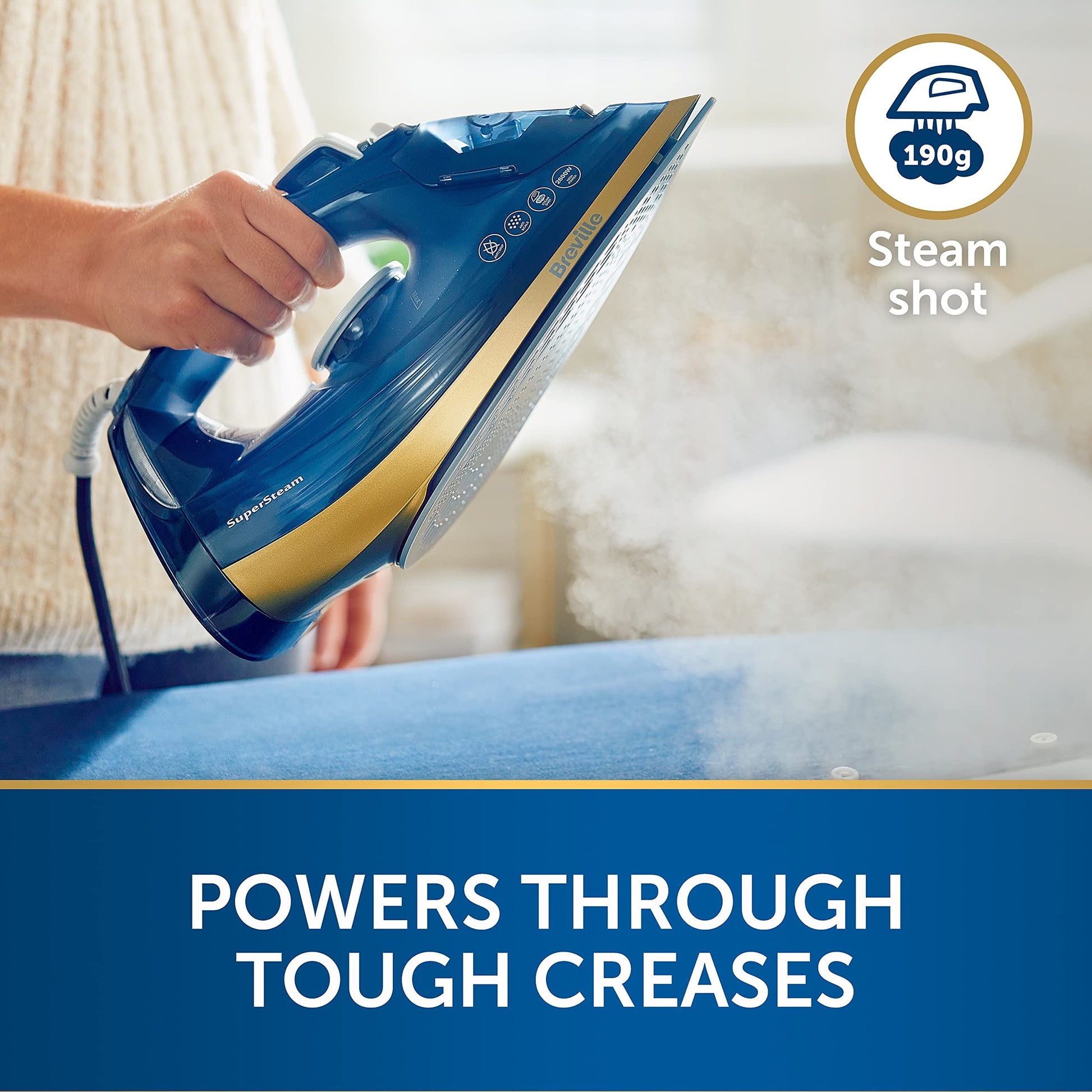 - 40g/min variable steam and 190g/min steam shot powers easily through tough creases to get through your ironing pile in no time