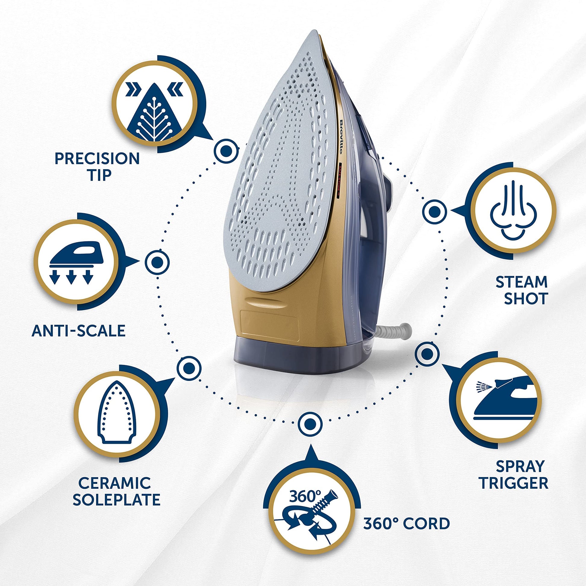 - Lightweight steam iron for easy holding, with a ceramic soleplate for smooth, fast ironing and a precision tip to navigate around buttons and tricky corners