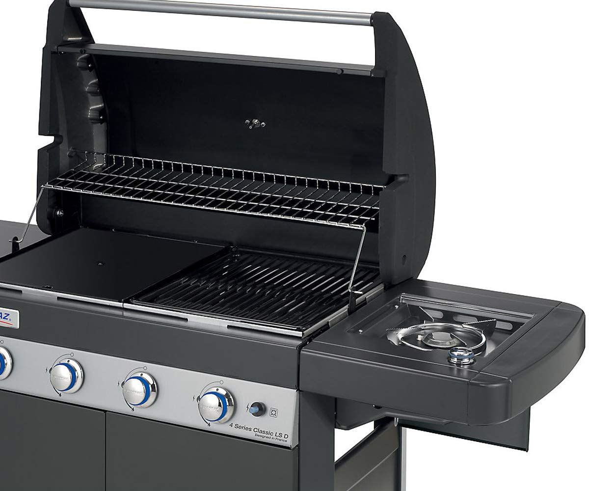 The Campingaz 4 Series LS D Gas BBQ also includes a folding side table and utensil hooks which are ideal for condiments and accessories with a side burner that is perfect for preparing sauces or sides for an even more special barbecue time.