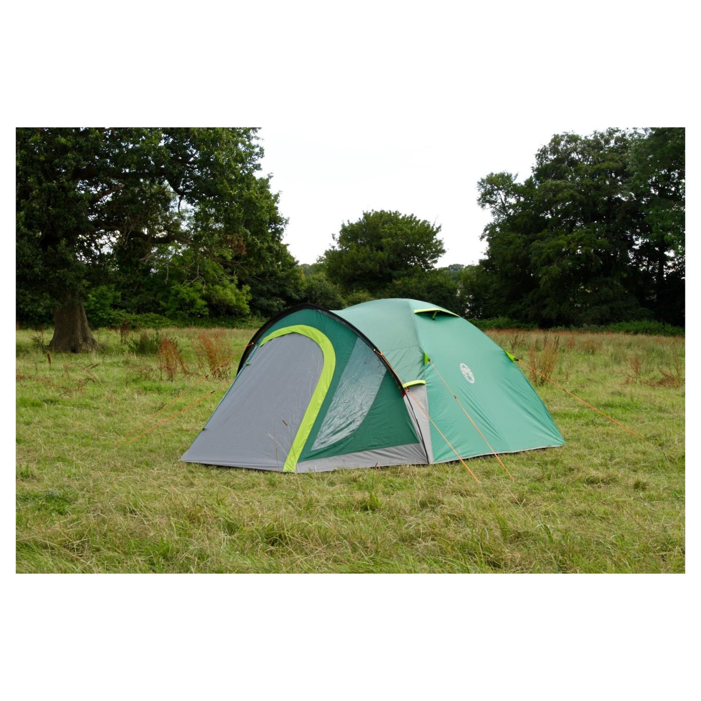This compact dome tent range is perfect for festivals and touring camping and thanks to the patented BlackOut Bedroom™ technology you won't wake with the light of the dawn. The stable and easy to pitch structure with fibreglass poles allows you to pitch-up quickly at the campsite giving you more time to focus on the fun ahead. Ideal for smaller families or couples that desire extra space on the campsite or at the festival, the Kobuk Valley 4 Plus is a large, 4-person dome tent with the added benefits of a large porch and innovative BlackOut Bedrooms so you won't wake at first light. Quick and easy to set up thanks to its simple yet stable, dome construction, the Kobuk Valley 4 Plus can be quickly and easily erected in minutes. A peaked porch pole helps optimise internal head height and the comfortable tent boasts a large porch complete with PVC windows, ideal for storing gear or muddy boots. Coleman's innovative BlackOut Bedroom offers a dark and temperate place to enjoy a good nights sleep. The Kobuk Valley 4 Plus features a high-performance flysheet with a hydrostatic head rating of 4500mm. Light yet strong, fibreglass poles are wind responsive and ventilation openings help ensure good airflow throughout the tent, helping to reduce condensation. A riser PE groundsheet in the porch and fully integrated bedroom groundsheet ensures clean, dry and bug-free camping. Offering SPF 50 protection from the sun's rays, the Kobuk Valley 4 Plus is treated with Colemans UV Guard technology. For added peace of mind, all fabrics are fire retardant. Polyester carry bag: Included | Pack size: 58 x 20 x 19 cm | Weight: 6.6 kg.