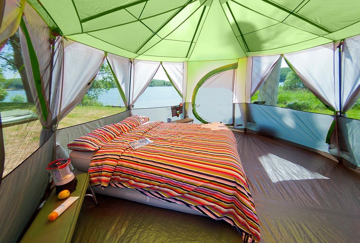 Sturdy and easy to pitch family size octagon tent: Colour-coded steel poles for easy set up and a good response to wind, flysheet can be removed and tent transforms into a bug-proof screen room
