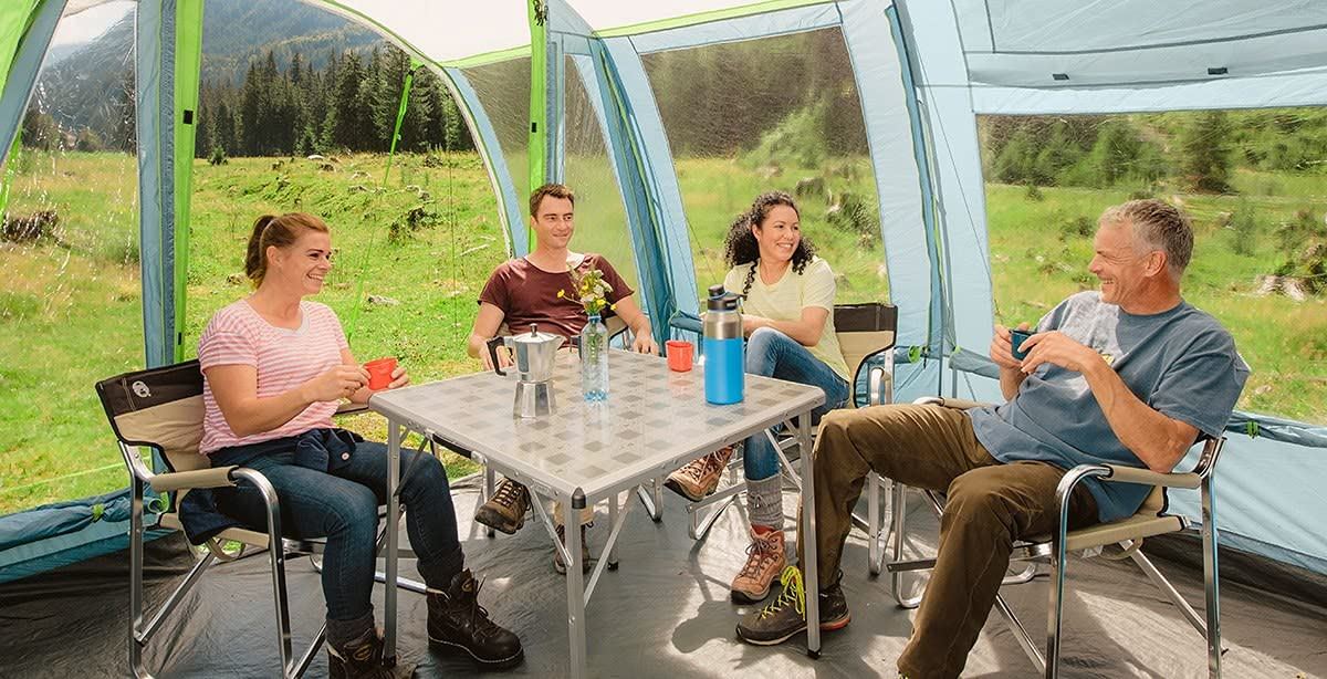 Multiple entrances offer easier entry and exit in inclement conditions. The Castle Pines™ 4L has a generous and bright living area in addition to the spacious porch with plenty of space for dining together or storing camping equipment and bags. The tent's outer fabric is fire retardant and for extra security, the zipper stoppers on the tent doors ensure that zips are always within easy reach in the event of an emergency, even for children.