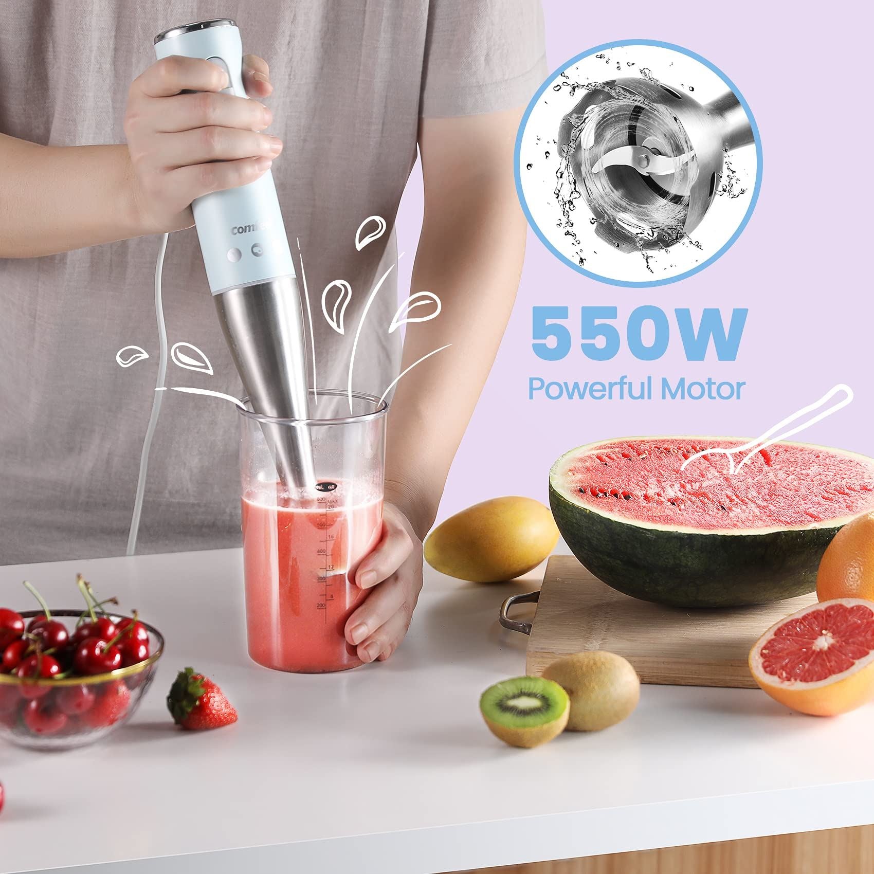 【Effortless Operation】The removable blending arm and fixed blade locks into the motor body for easy operation. The anti-splash stainless steel S-shaped blade easily blends ingredients for smoothies, milkshakes, soups or baby food.