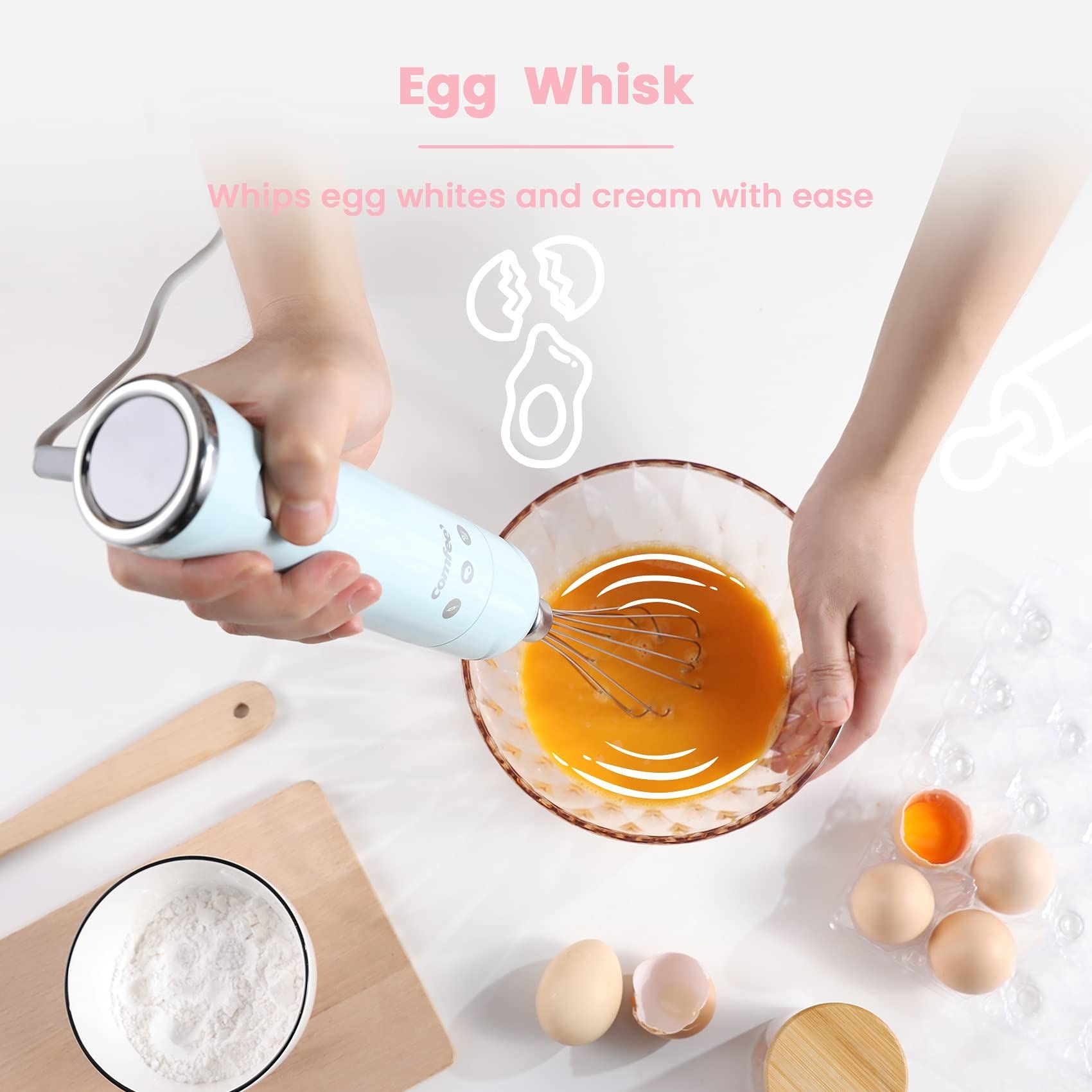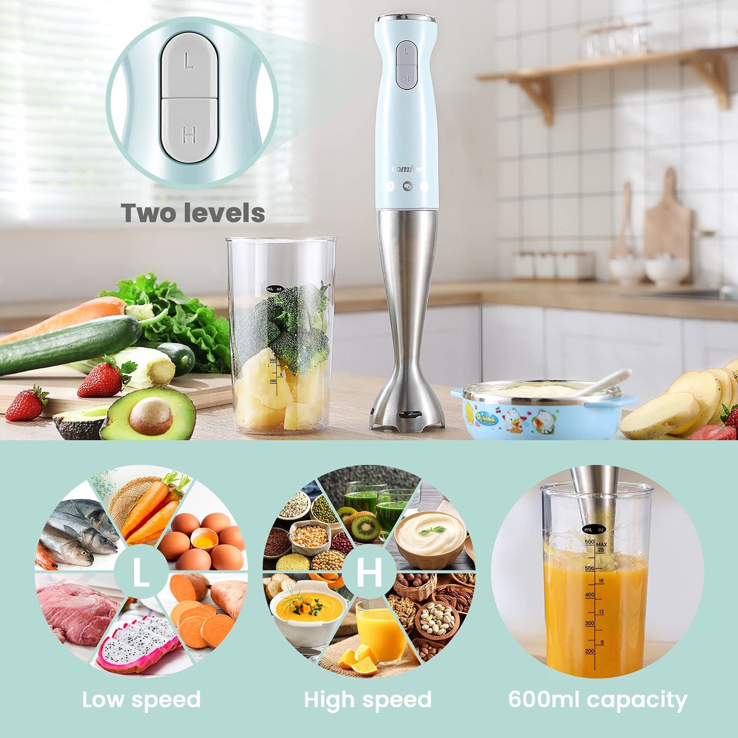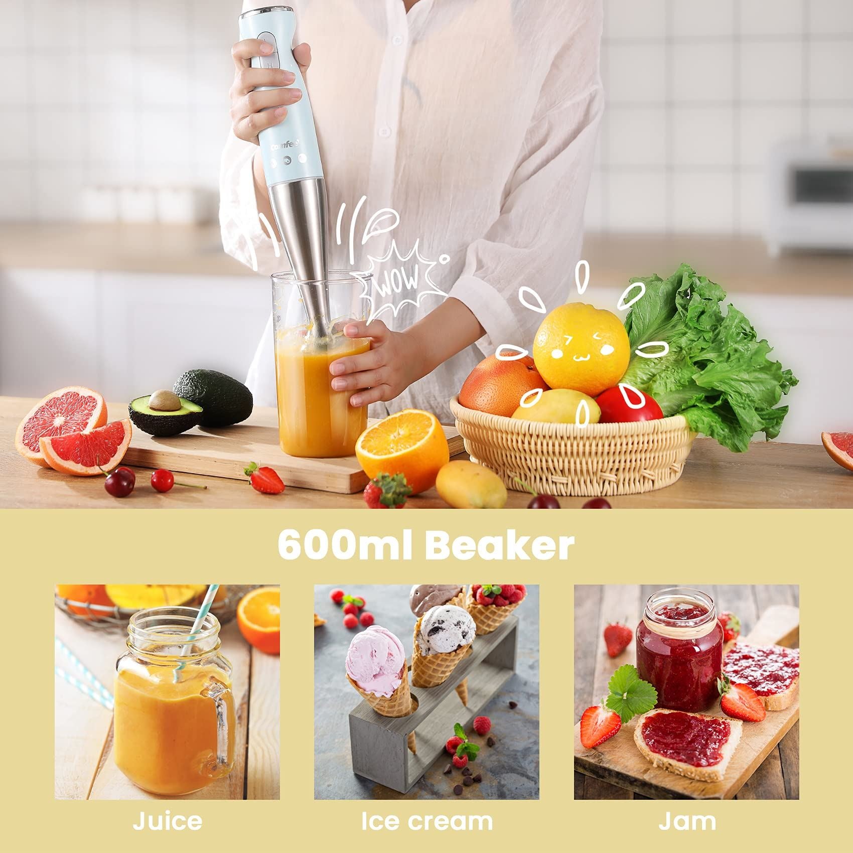 【Multifunctional】3-in-1 Multifunctional Hand Blender Set-Includes blender shaft, whisk and beaker. Perfect for mixing, grinding, blending, whipping, pureeing and much more! This hand blender can be easily stored when not in use.