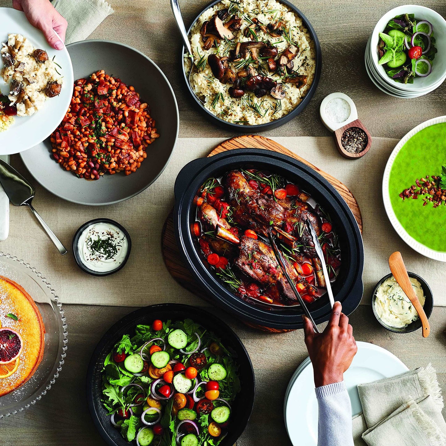 Easy to Clean: One pot for both searing and slow cooking means less washing up, plus both bowl and lid are dishwasher-safe
