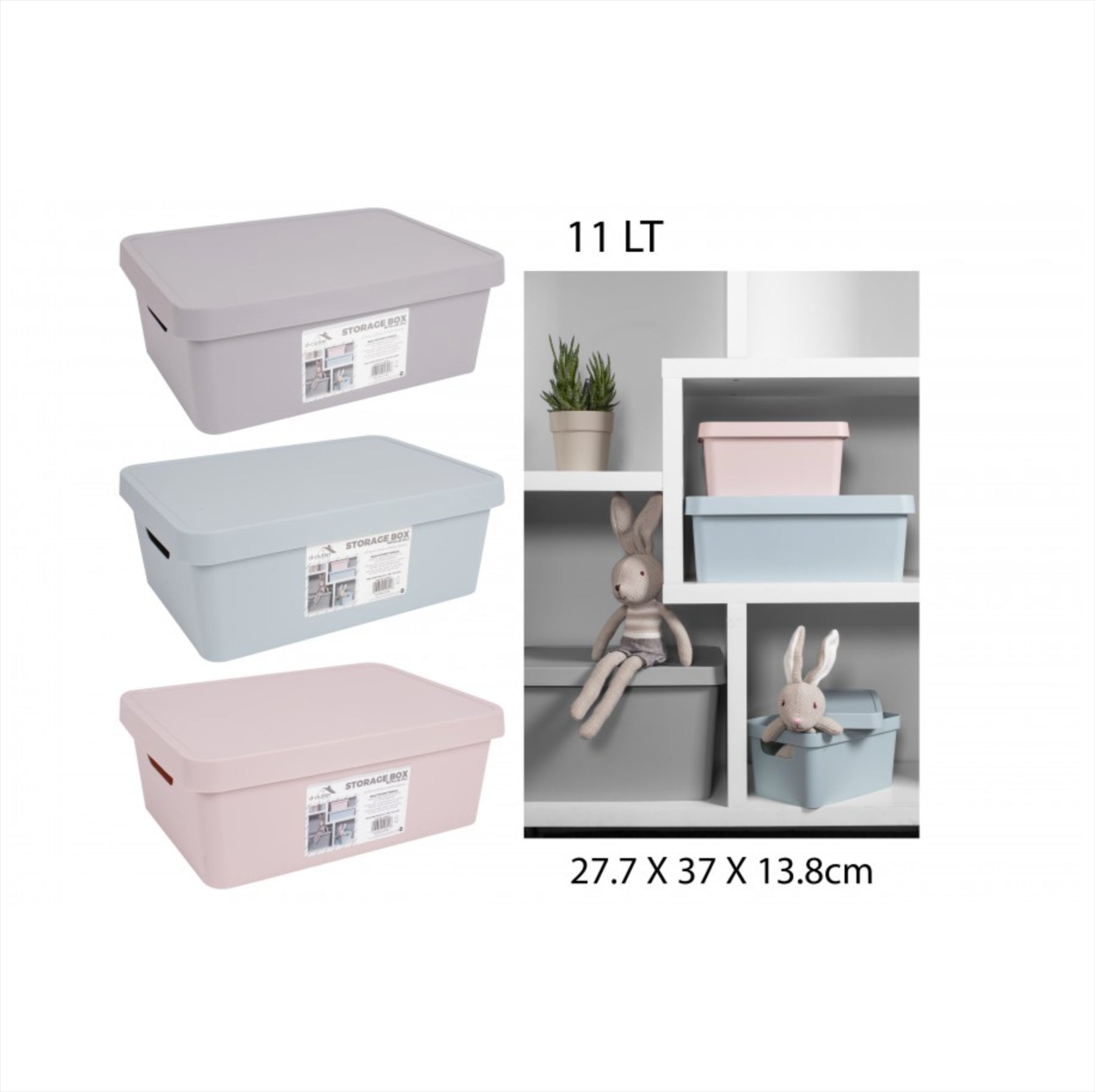 D-Clutter 11L Storage Box with Lid - 3 Assorted Colours
