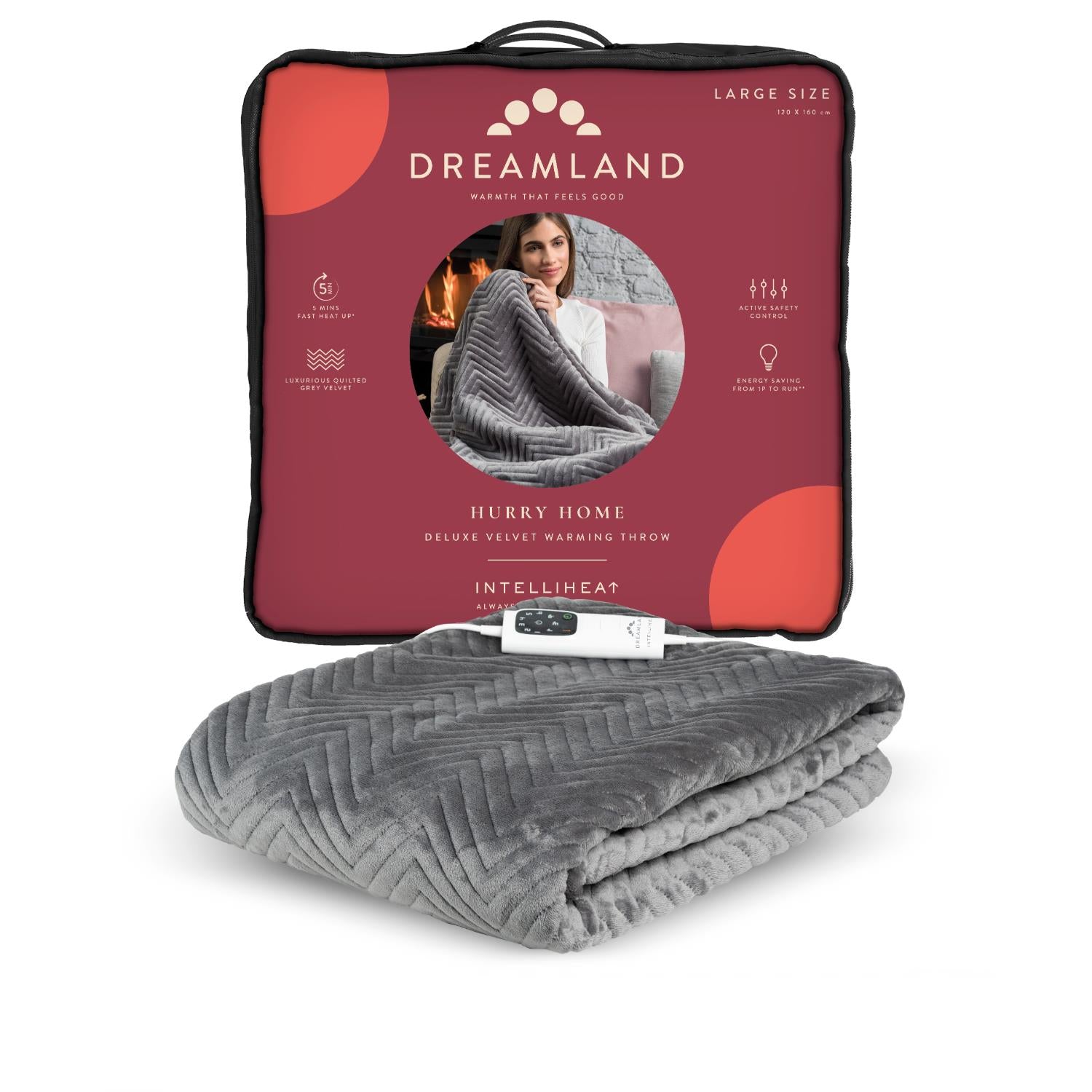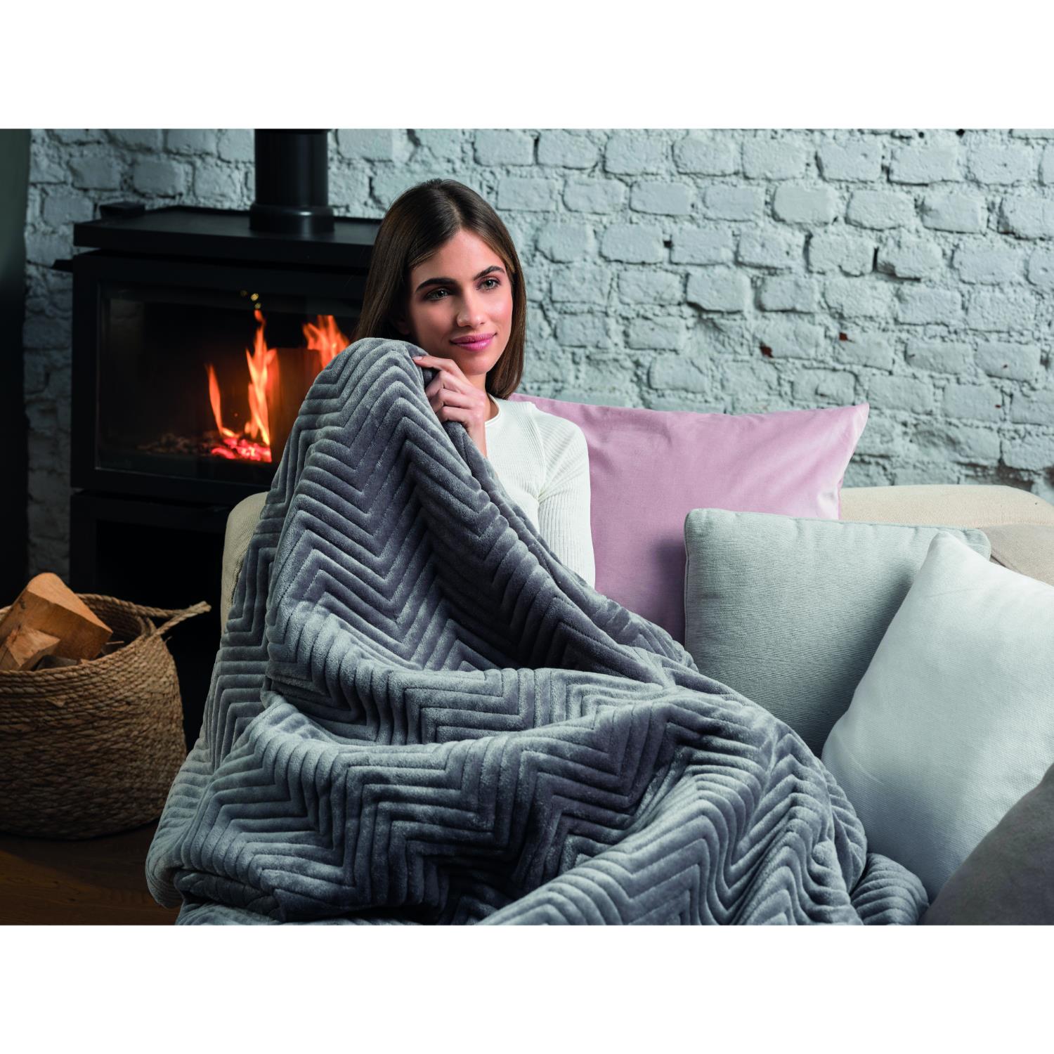 Dreamland’s Deluxe Grey Velvet Herringbone Quilted Throw is super-soft and perfect to snuggle under, you will be warm and cosy in minutes thanks to the fast heat Intelliheat + technology.