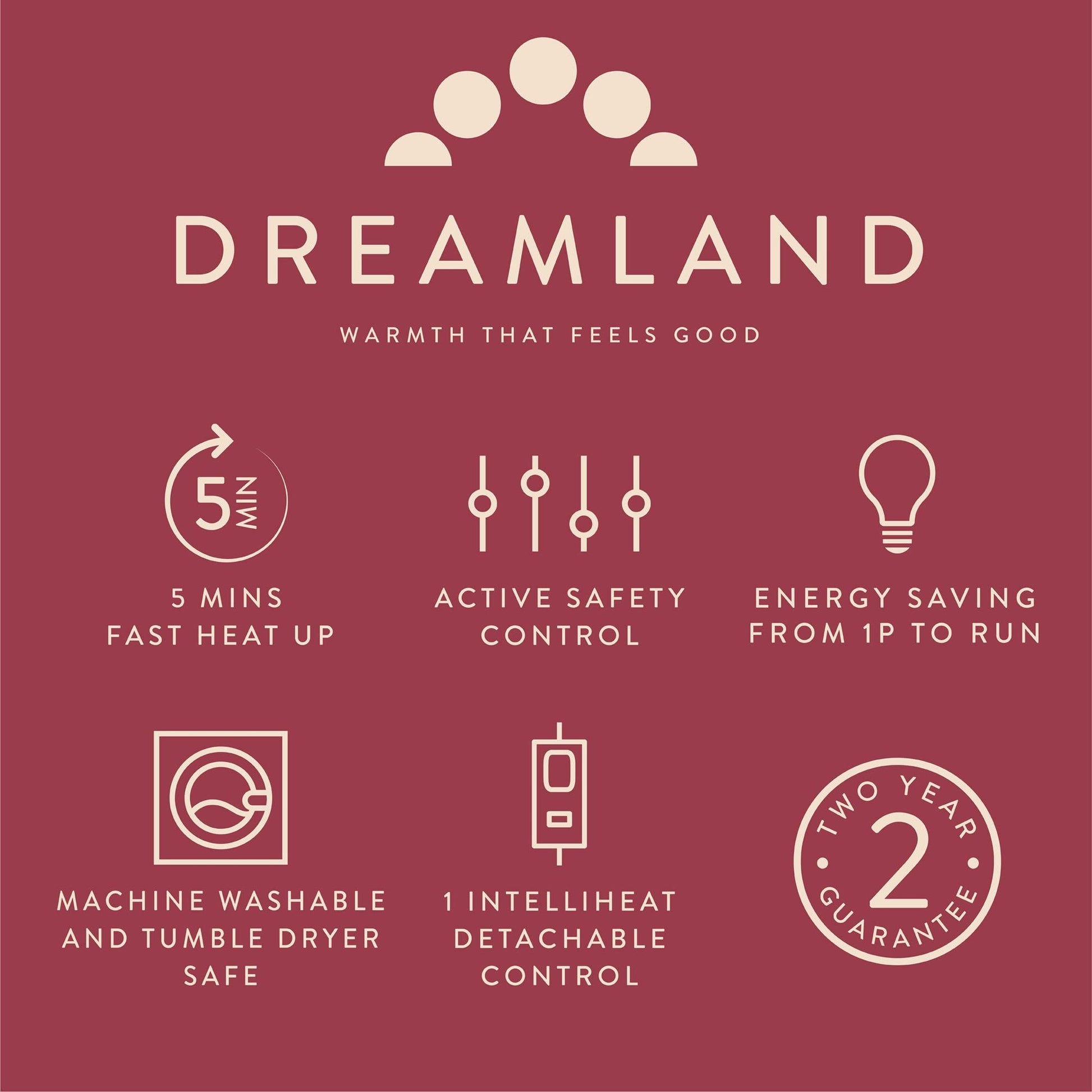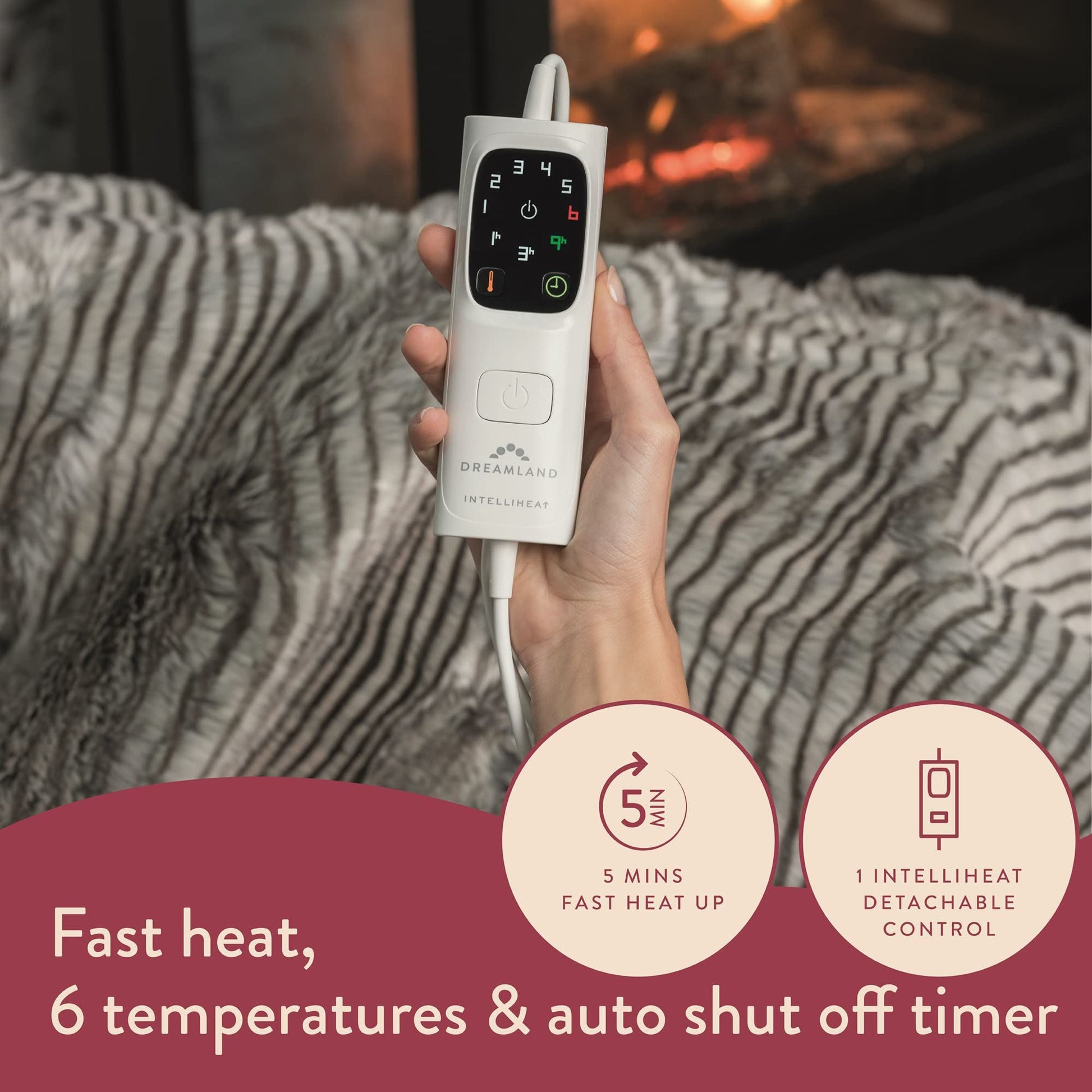 Dreamland Intelliheat+ LED Digital detachable control comes with 6 temperature settings and 1h 3h and 9h auto shut off timer, so you can just set it and forget it. The clever auto safety function automatically runs a full check of your heated throw every time you switch it on. Simply switch it on and your throw will be lovely and warm in just 5 minutes. Then, before you snuggle down to relax, select your preferred temperature, and the Intelliheat+ technology will ensure that it will maintain the same level of comfort, automatically adjusting to the temperature of your body and room, minimizing the energy consumption. The LED light brightness automatically adjusts and it has a long 3m cable.