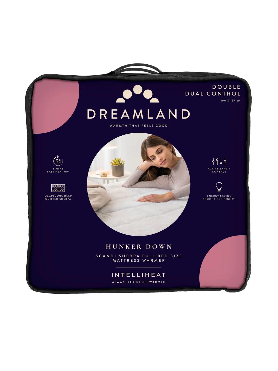 Hunker down in style this winter, with our brand new Scandi Sherpa, full bed size heated electric underblanket. Create an atmosphere of warmth, wellbeing and cosiness to your bedroom. As the nights draw in, switch on and sink into the sumptuous sherpa to be instantly cocooned in warmth. Rest safe in the knowledge that Dreamland's latest intelliheat technology will monitor and adapt to your body temperature throughout the night. It's reversible, so you can simply turn it over in the warmer months when you don't need the super warm Sherpa. Full bed size, for extra comfort and protection for your mattress, and it's easy to fit with elasticated corner straps. Scandi creates an atmosphere of warmth, wellbeing and cosiness that will make you love jumping into bed every night. Create a sleep sanctuary that will have you toasty in minutes. Sooth your way to slumber and secretly wishing for a chilly night. Warm up in just 5 minutes with our fast heating technology. Our heating products start from just 1p to run*. Sleep peacefully with automatic safety controls. Stay in control without getting up from your slumber. Machine washable and tumble dryer safe.