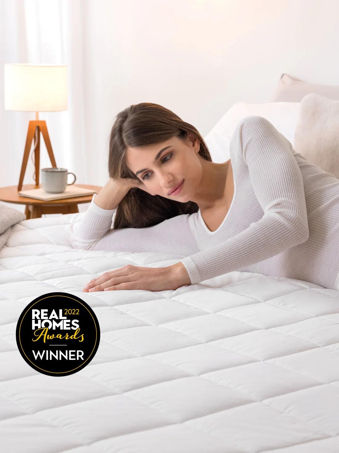 Crafted from 200 thread count sustainable, organic cotton, our premium warming mattress protectors have a cloud-like softness so you can drift off cocooned in warmth.