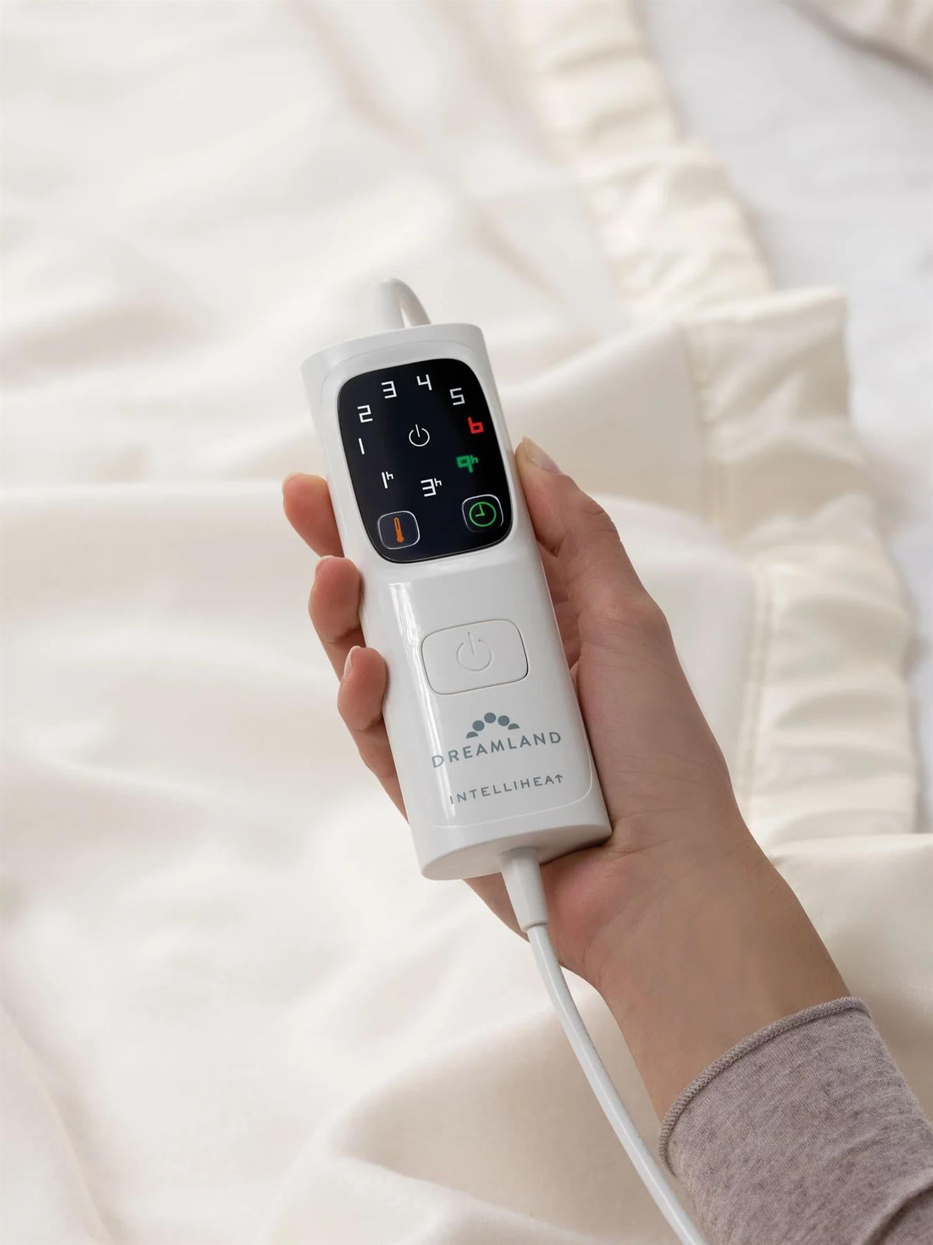 Inspired by traditional comforters yet designed for modern snoozing, our plush, warming blanket can be draped on top of bedding or tucked inside a duvet cover. Featuring luxurious super-soft ivory fabric with satin trim, it’s ideal for everyday use and comes in a variety of standard bedding sizes. Just close your eyes, relax in warmth and float away to peaceful dreams. Machine washable and tumble dryer safe, to keep it clean and fresh. Intelliheat Technology cleverly responds to temperature changes while you sleep. So turn down your heating and turn on the overblanket, and be snug as a bug. Intelliheat patented technology. LED Digital Control with 6 Temperature settings. Fast 5 minute heat up. 1, 3 or 9 hour auto shut off timer. Cost from 1p to run*. Active safety function. Automatic adjustment of LED light brightness. 2 digital Intelliheat controls. Detachable controls. Machine washable & tumble dryer safe. Ideal for sofa and memory foam mattresses. Kema Keur tested – Safety tested under high level international standard. 2 Year Guarantee.