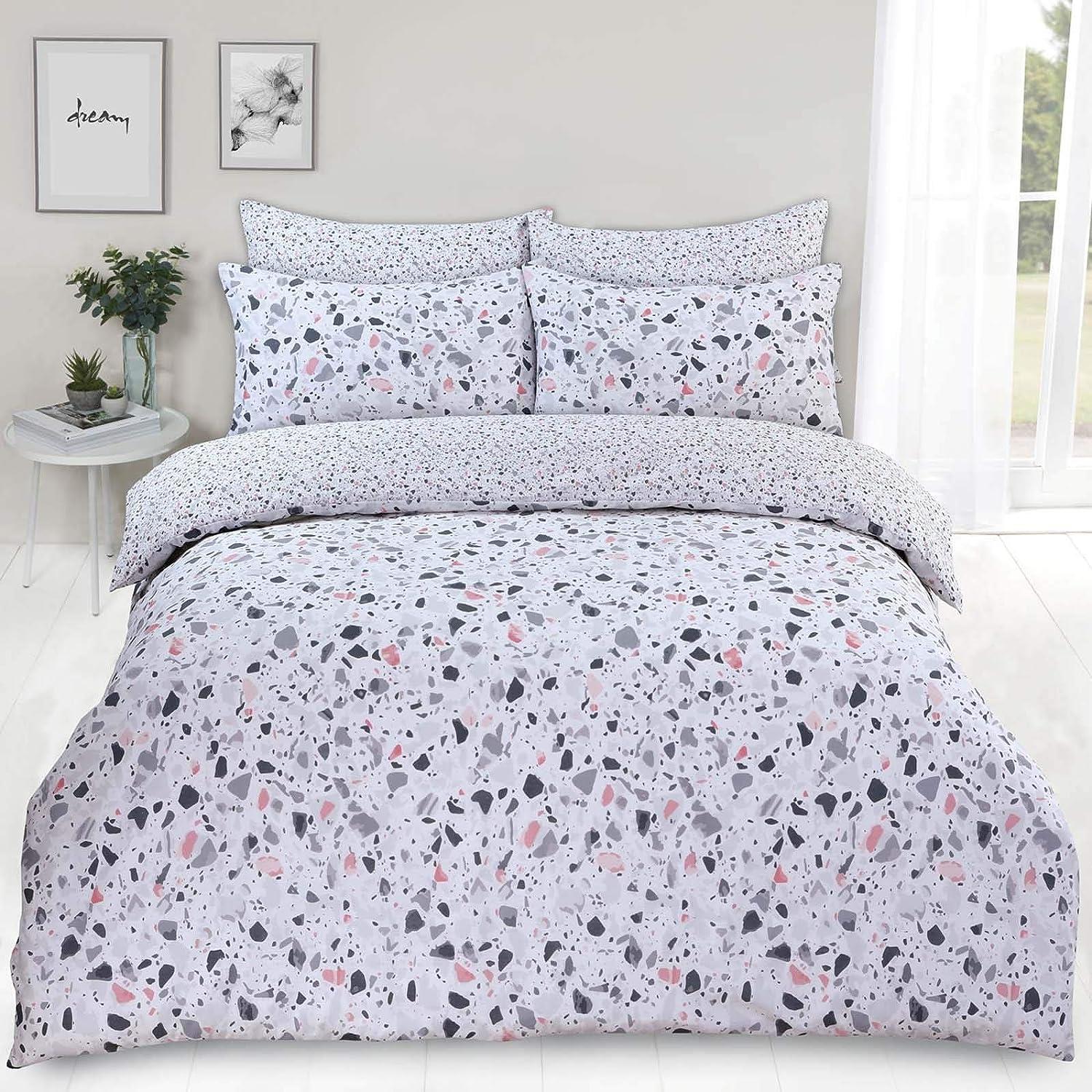 Dreamscene terrazzo mosaic print quilt duvet cover with matching pillowcase marble bedding set, in a stylish 2-in-1 reversible design.