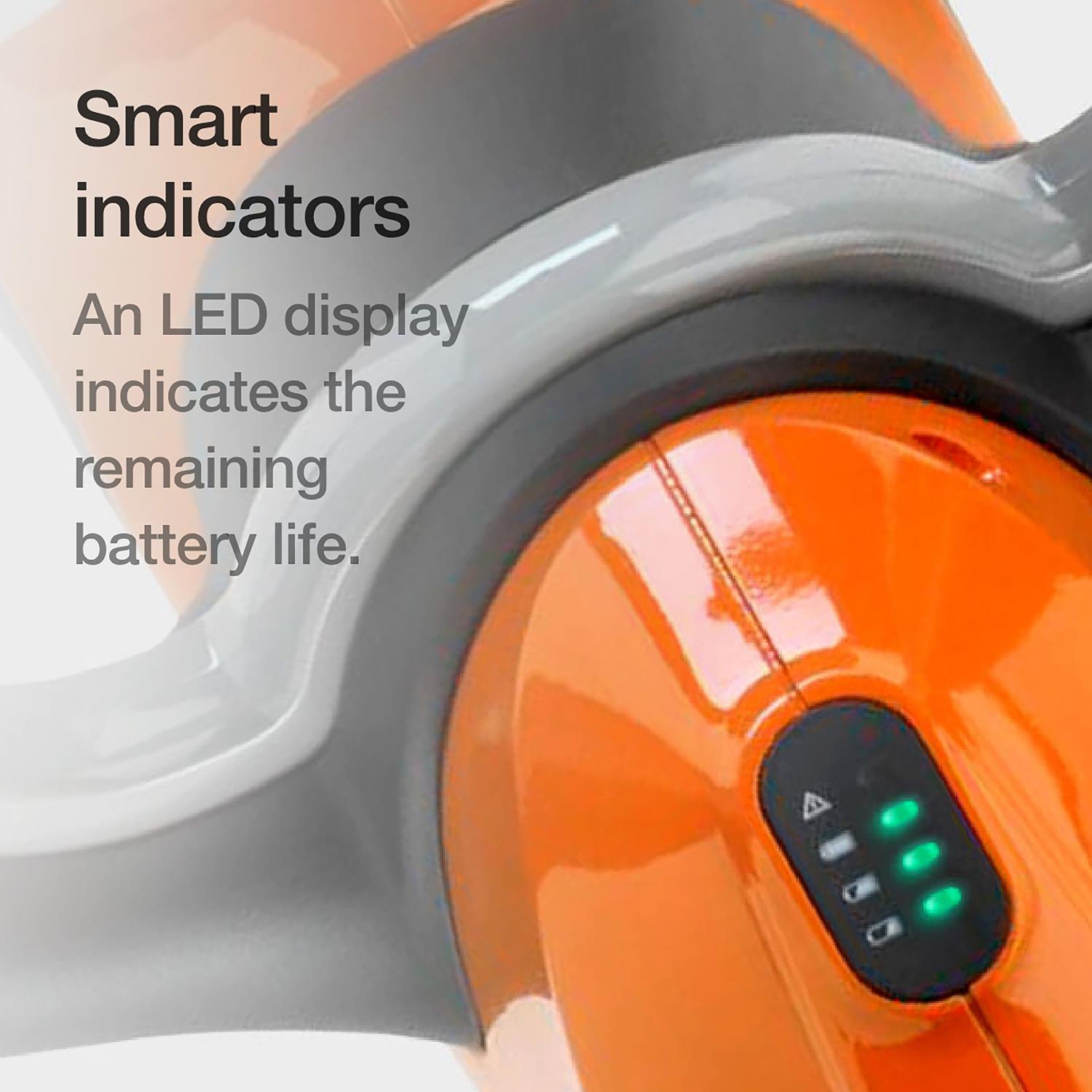 An LED display gives you the ability to see the remaining battery charge from the operating position.