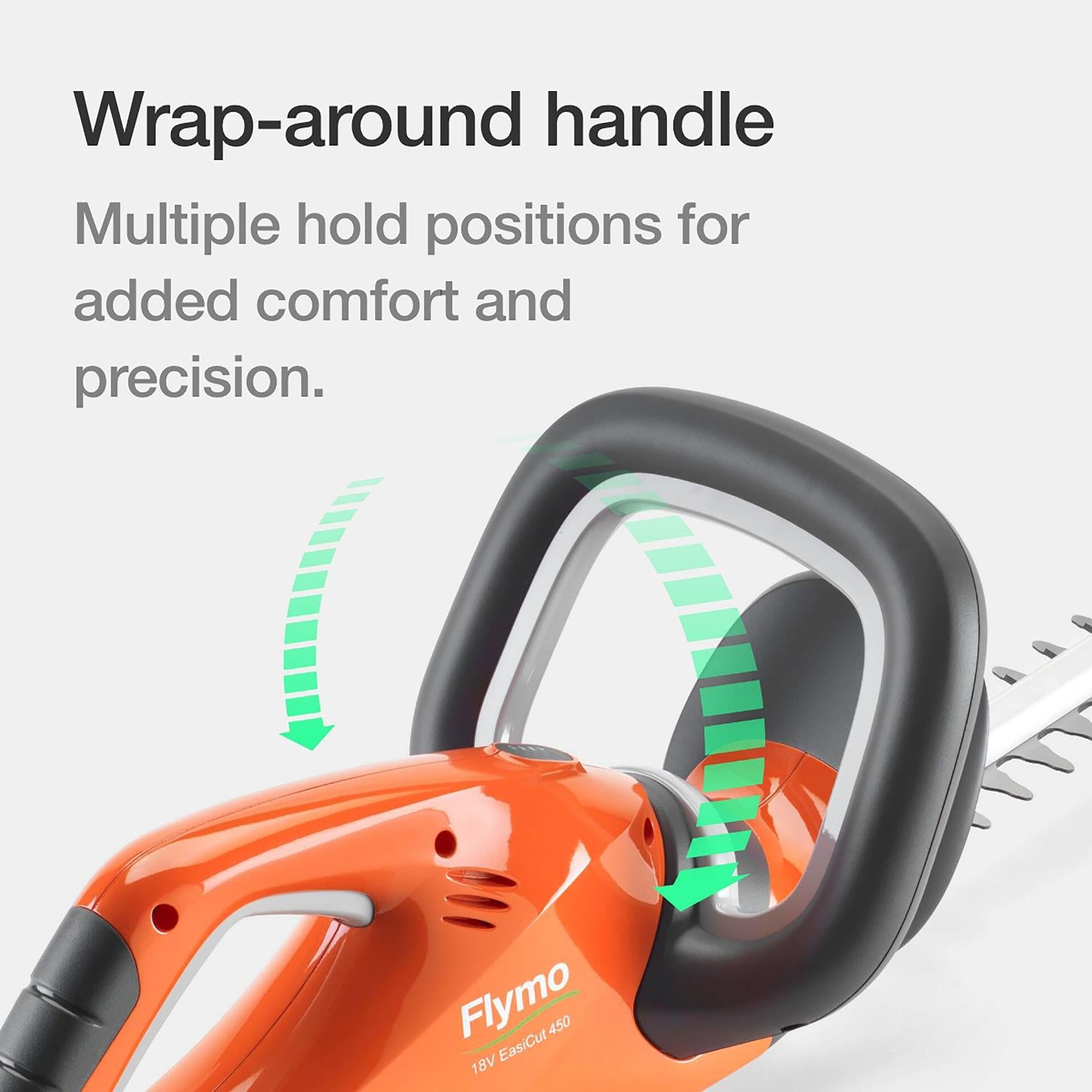 Designed for small to medium gardens, the Flymo EasiCut 450 is a cordless hedge trimmer that comes with extra features to help make trimming easy, with no restricting power cord for greater freedom and flexibility. Powered by one 18V Power For All battery and utilising a 45cm cutting width and 16mm blade gap with precision blades to ensure a high quality cut every time - you can easily cut up to 175m2 of hedge on a single charge.