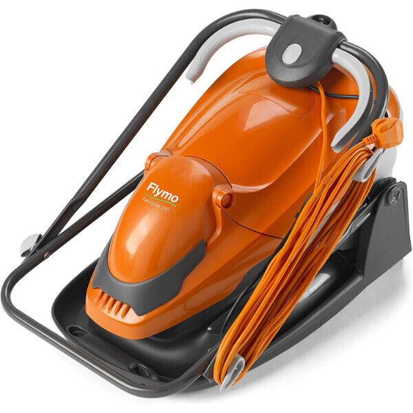 Designed for small to medium gardens, the Flymo EasiGlide 330 is a 33cm electric hover collect lawnmower with a powerful 1700W motor. Highly manoeuvrable as it floats on a cushion of air whilst cutting the grass. Equipped with dual lever handles, an easy to empty 20L grassbox, convenient cable storage, can easily fold down for storage and be wall-mounted. Ideal for sloped and irregular shaped gardens, the EasiGlide 330 is a compact and lightweight hover mower that floats on a cushion of air, making it highly manoeuvrable for your ease-of-use. Utilises a powerful, high performance 1700W motor and a 33cm cutting deck capable of cutting through even thick dense grass so you can tackle your lawn with ease. Its 4 cutting heights ranging from 10 to 30mm allows you the flexibility to find the perfect height for your lawn, with the long life metal blade ensuring a neater cut and tidy finish to your lawn. The 20L collection box collects and compacts as it cuts reducing the number of stoppages when cutting your lawn. Its 10m cable gives you the freedom and flexibility to move around your garden area, without the need to worry about reach, and the flat folding handles allow the mower to hang up on the wall for space saving storage after use.