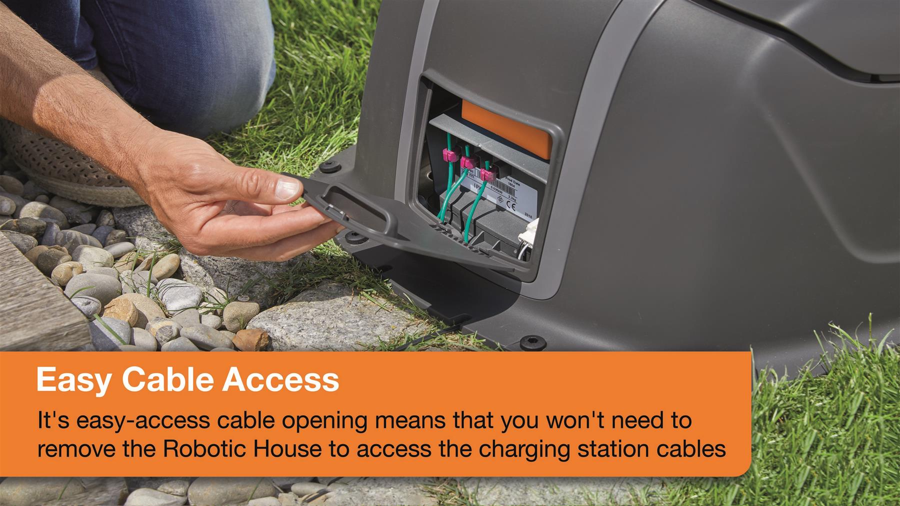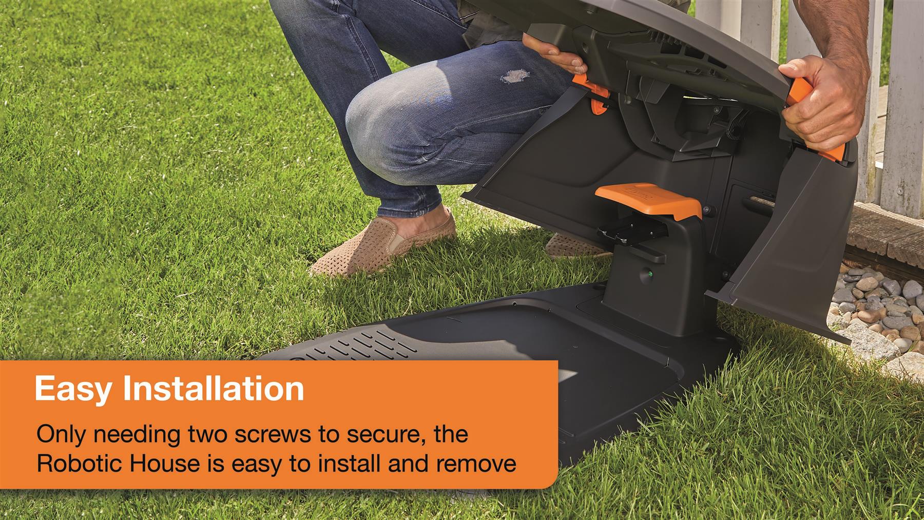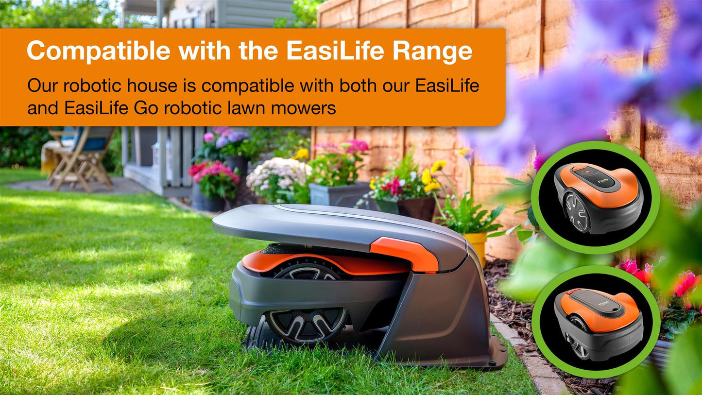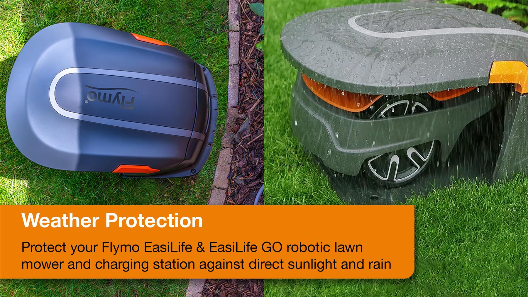 Protect your Flymo EasiLife robotic lawnmower and charging station from the effects of weather and direct sunlight. The EasiLife House provides your robotic lawnmower with an all-weather protected home allowing it to charge in a protected environment. This practical house has an opening hood, allowing you to have access to the control pad on the robotic lawnmower and is simple to install. Provides ideal protection against all weathers. Easily accessible for quick programming from the control panel. Is easy to assemble and attaches over the charging station. Suitable for: Flymo EasiLife Models.