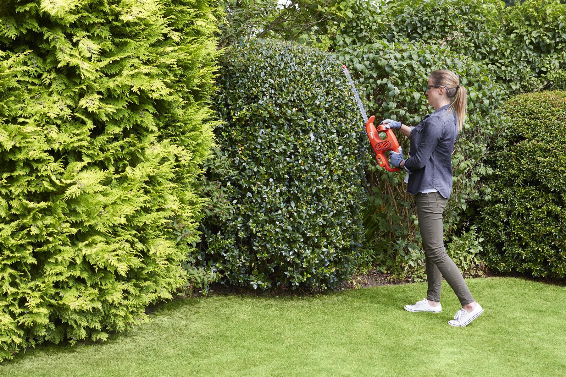 Designed for smaller sized gardens, the Flymo SimpliCut Li is an integrated cordless hedge trimmer that comes with extra features to help make trimming simple, with no restricting power cord for greater freedom and flexibility. Utilising a 14.4V battery, blade length of 40cm and tooth gap of 16mm, the SimpliCut Li helps you make easy work of shaping your hedges and bushes. Its dual action blades provides a clean and precise cut every time. Its centralised handle design allows for comfort and ease when in use. Featuring an integrated battery with an LED display gives you the ability to see the remaining battery charge from the operating position. A debris guard and blade tip protector helps to increase operator safety and blade protection when trimming close to walls or fences.