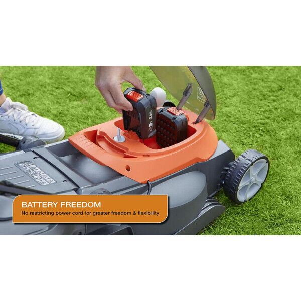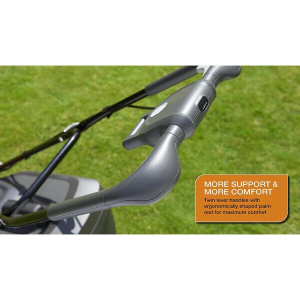 Designed for medium sized gardens, the 36V UltraStore 340R cordless lawnmower uses 2 x P4A 18V batteries for a powerful cutting performance - making mowing easy with no restricting power cord for greater freedom & flexibility. Utilising two 18V 25 Power For All batteries (included) for a powerful 36V performance that can mow up to 200m² of your lawn on a single charge. Its 34cm cutting width and a 20-60 mm cutting height with 5 steps ensures a neat and tidy finish. A close edge cutting system with grass combs allows a neat cut right up to edges of the lawn or flowerbeds, reducing the need for trimming afterwards. The large 35 Litre grassbox takes longer to fill so you can spend less time emptying grass clippings. The clever vertical storage position means it takes up less floor space keeping your shed neat and tidy, or you can simply fold the handles down flat to store away neatly. Equipped with all the features that come with the EasiStore, this lawnmower also includes an ergonomically shaped palm rest for maximum comfort when in use. The 18V Power For All battery can be shared across a wide range of tools in the Power For All Alliance.