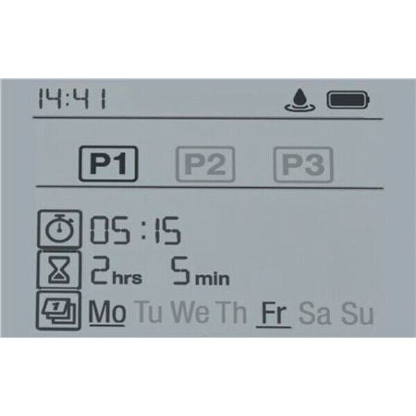 Flexible Scheduling: The Water Control can easily be adjusted with a switch - an easily-legible LC display showing all settings at a glance for quick confirmation. The weatherproof operating unit can be removed to carry out the settings.