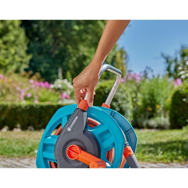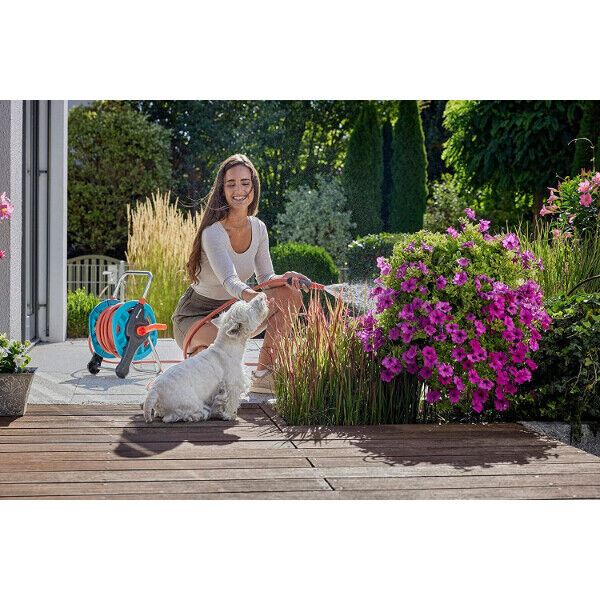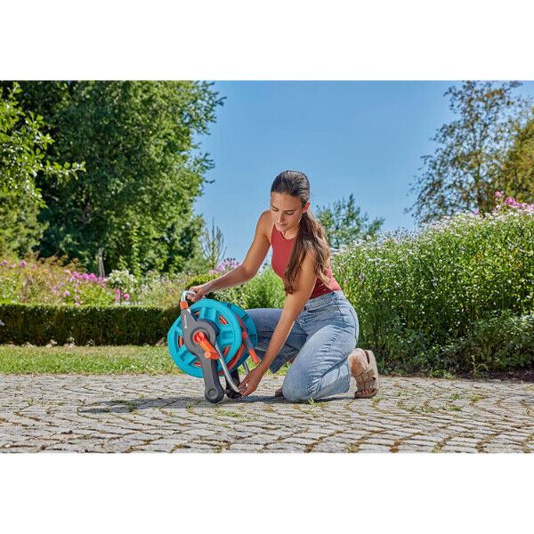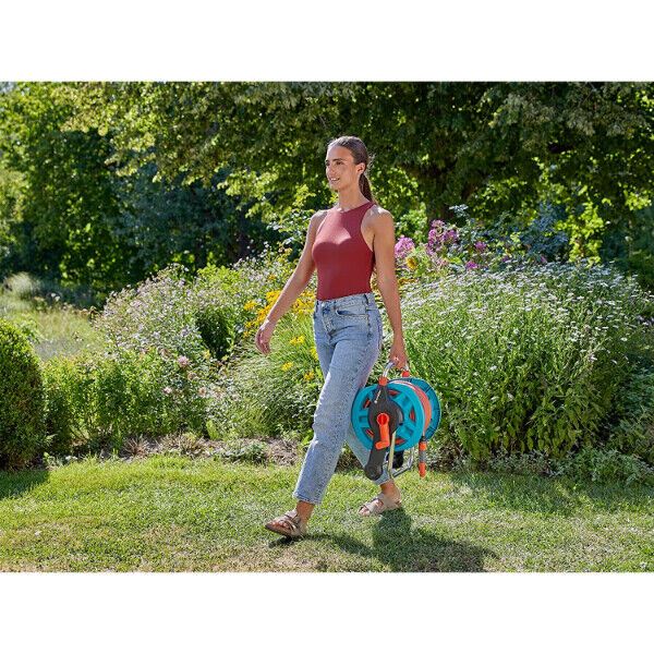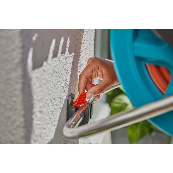 Wall-Mountable: The GARDENA 25m Wall Hose Reel Set can be mounted to a wall and removed at any time for mobile use around the garden.