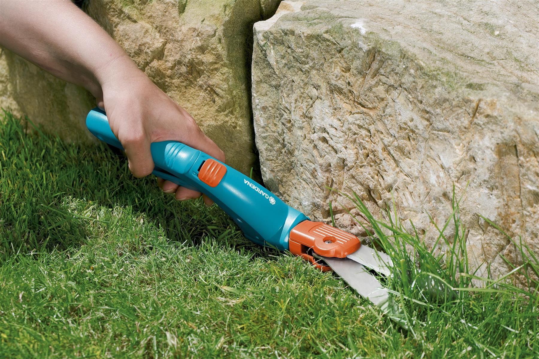 The flexible GARDENA Classic Grass Shears allow precise lawn edging. The ergonomic shape of the handle allows easy, comfortable cutting. Through the 360° rotatable cutting, both left- and right-handed people can work comfortably. Thanks to the hardened and bright galvanised blades, the Grass Shears have a long life and are rust-proof. The special blade bearing allows even, powerful cutting over the whole blade length. The practical single-handed lock, allows you to store your Shears away safely.