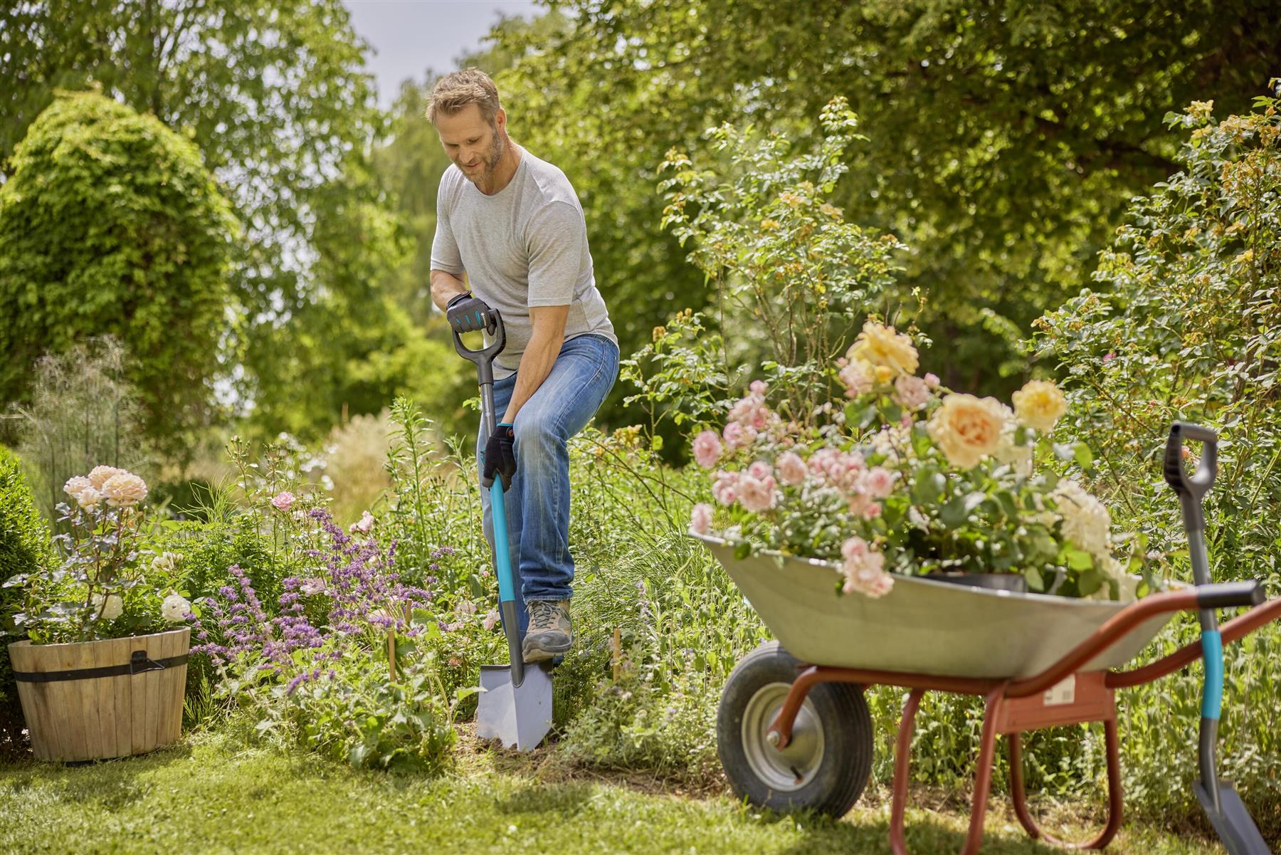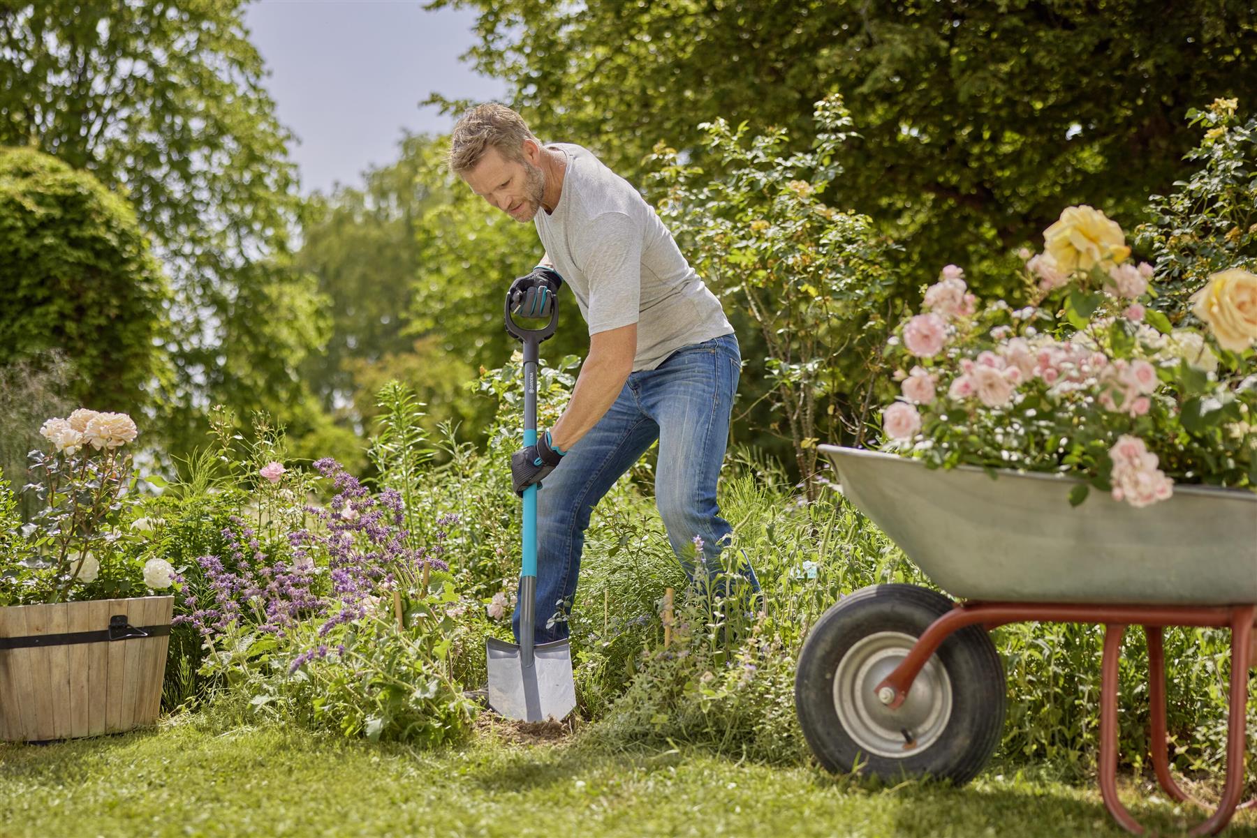 The GARDENA ClassicLine Spade features a long, solid metal shaft, not only for durability but for user comfort; the longer spade shaft means less bending and strain on your back. This feature paired with the ergonomically designed D shaped handle makes the spade easy and comfortable no matter how demanding the task. The wide foot rest at the top of the spade gives you more power and support when digging. The sharp, robust spade head is perfect for helping break through tough soil and ground. The GARDENA ClassicLine spade comes with a 10 year warranty.