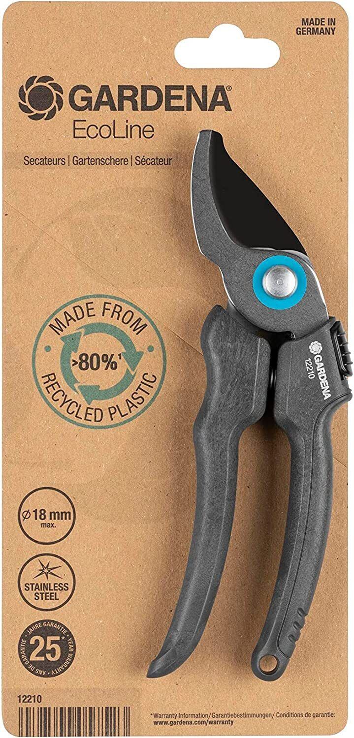 Perfect for cutting flowers, green wood and young shoots the GARDENA Garden Secateurs are made with high quality precision ground blades – for a clean, healthy cut. With a cutting diameter of 18mm, the Bypass principle allows the blades to glide past each other. Made from over 80% recycled post-consumer plastics, the EcoLine secateurs are sustainably made, durably built and aesthetically designed. The safety lock on the secateurs allow you to store them away safely. These secateurs come with a 25 year warranty, so you can rest assured they're made to last.