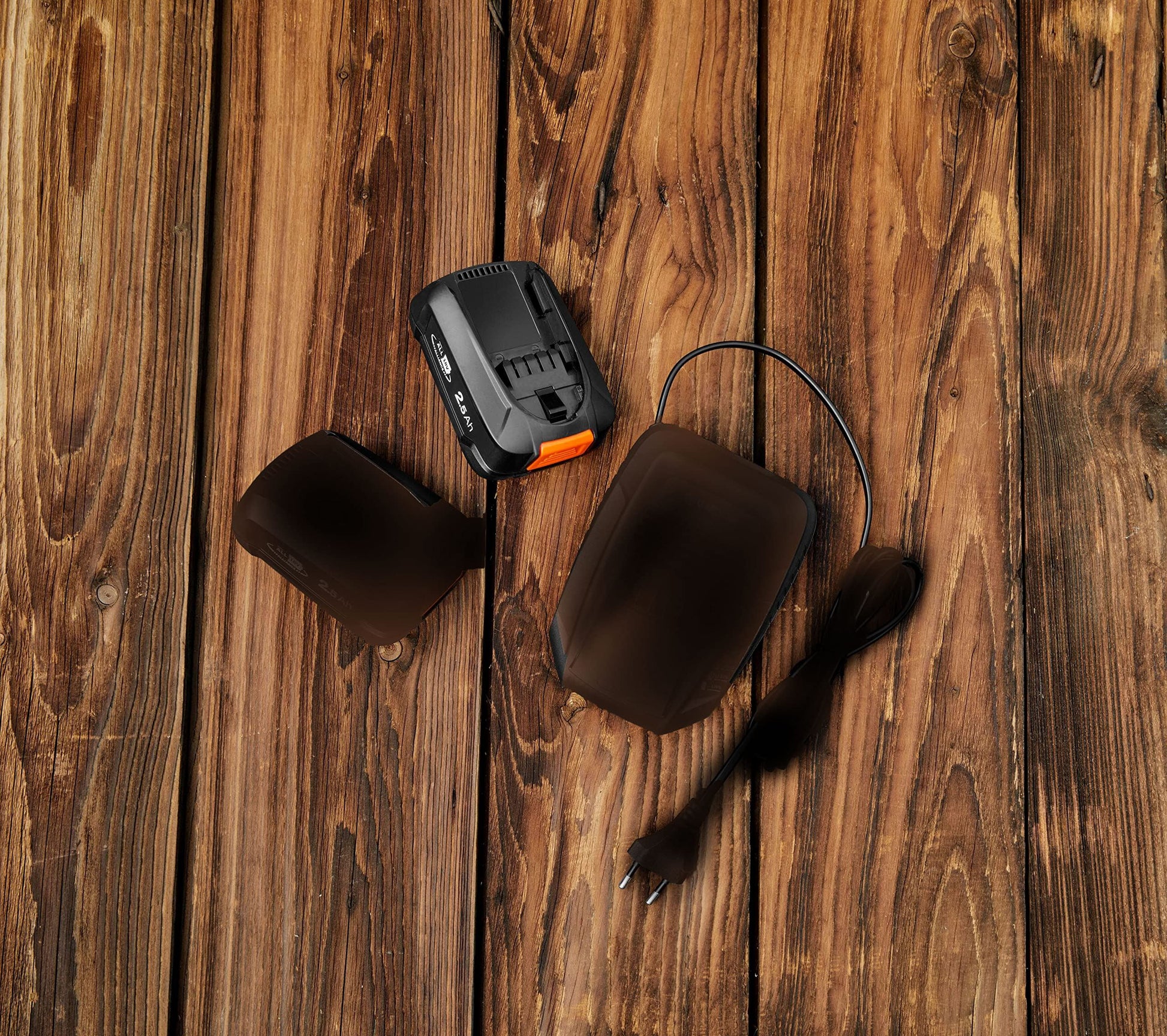 The Lithium-Ion cells inside the battery pack can be charged quickly and every time, without memory effect for a long battery life time. With its capacity of 2.5Ah it is compatible with all GARDENA 18V POWER FOR ALL- tools.