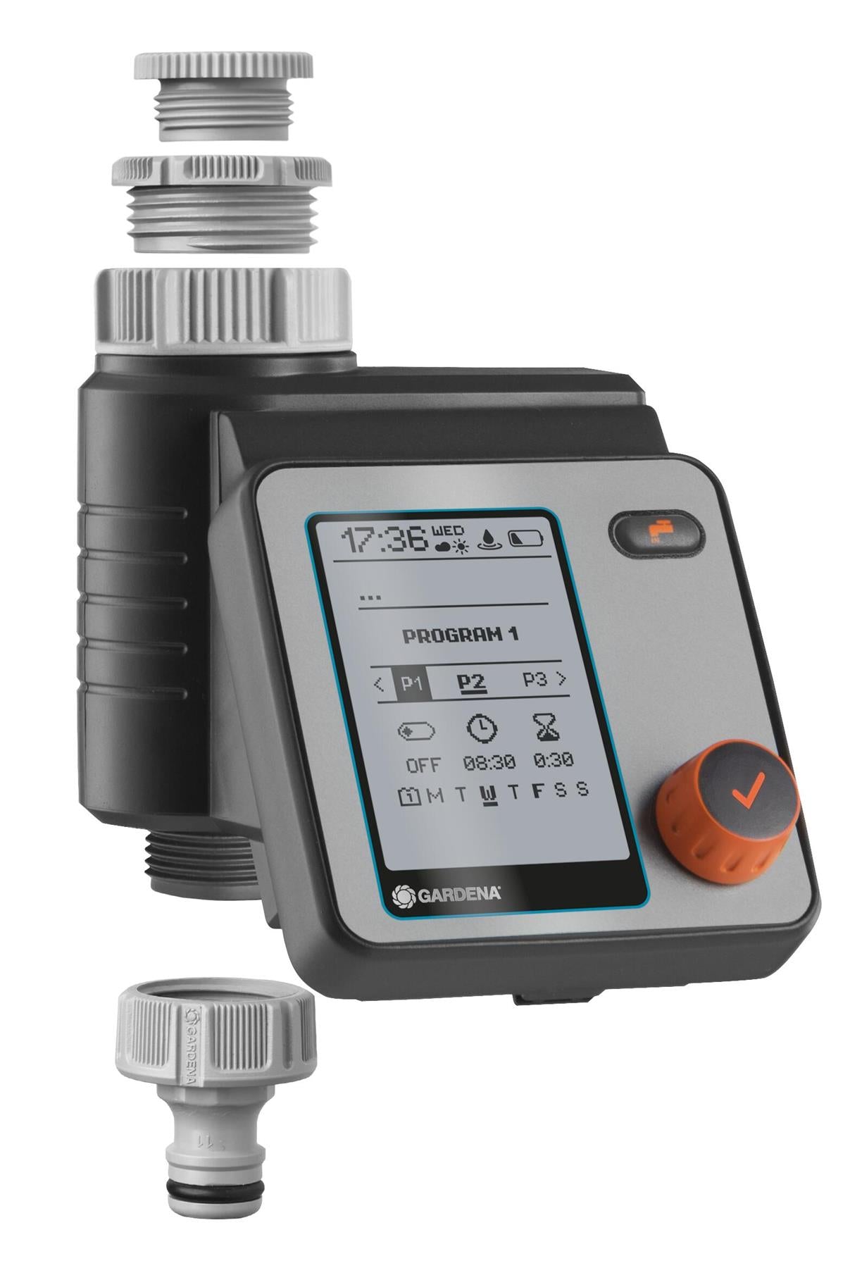 Automatic, time-saving irrigation, the GARDENA Water Control Master allows you to create up to 6 individual watering programs. Connect your water control to a Micro-Drip system or sprinkler for automatic, convenient watering. The Master control is easy to operate thanks to the rotary and push control and easy-to-view LC display. Connect the weather-proof unit directly to the tap, then set your watering schedules, then sit back, relax, knowing your plants are being cared for. The Master Control can be easily adapted to suit weather conditions, buy either reducing water times in 10% steps, or pause the programs completely until its ready to be used again. Using 1x9V alkaline battery, the timer will stop watering if battery levels are too low. Use the water now function for continuous water flow without removing the unit from the tap. Automatic, flexible and time-saving irrigation with 6 independent schedules for start, duration and days of the week. Power level of the 9 V battery (not included) visible on the LCD screen; when the battery level is low, Safe Water Stop technology prevents watering commencing and any water leakage. Adaptable to weather conditions: reduce watering time centrally in 10% steps or pause directly for 1 to 9 days in the event of bad weather.