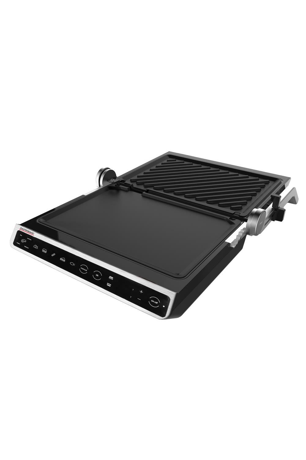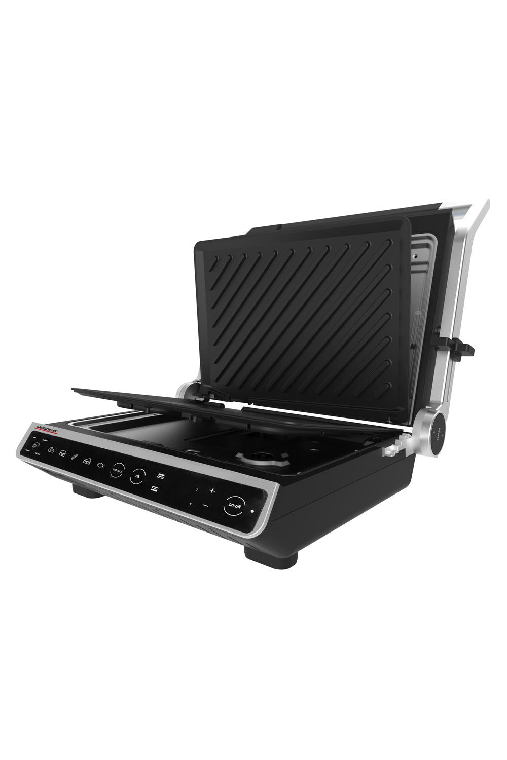 The Design BBQ Advanced Smart can be used in grill contact mode providing heat above and below food and a grill area of approximately 745cm² or opened flat in barbecue mode to provide a grill area of approximately 1490cm².