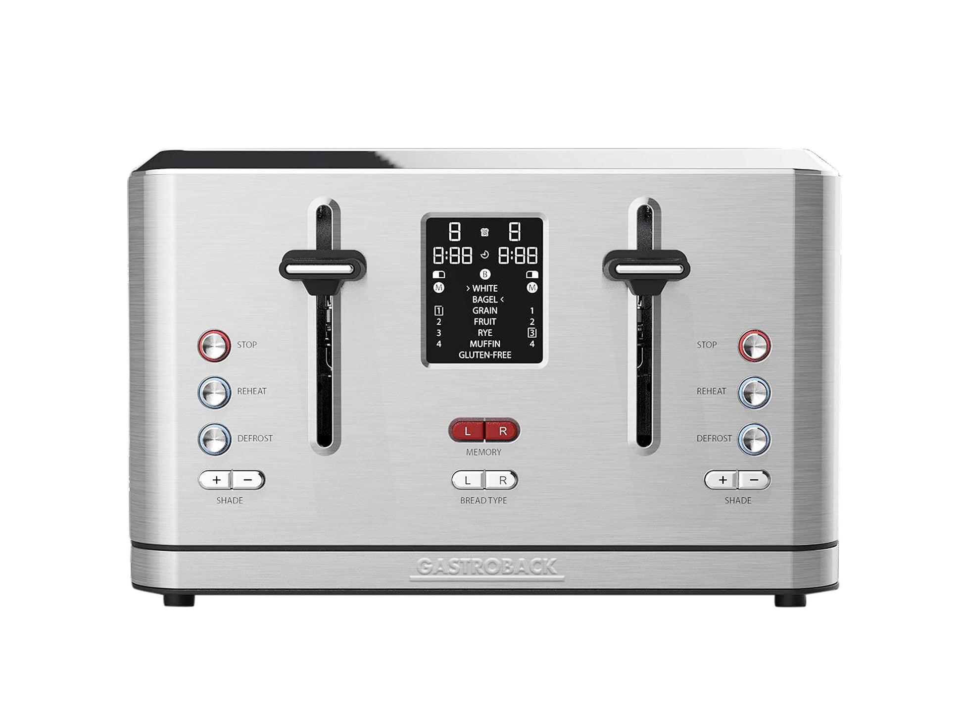 Extra-wide toast slots, also suitable for hamburger buns with high-lift function to easily remove small pastries.