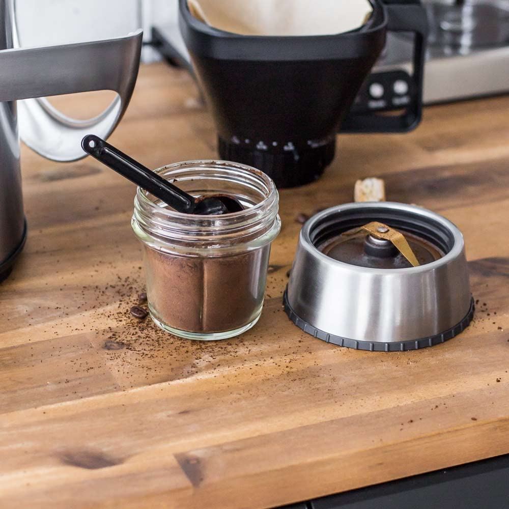 Coffee grinder function - Stainless steel grinder – titanium coating (TiN). 0.2 litre glass container with scale. Can hold up to 150 g coffee beans. For coarse to fine ground coffee, for filter coffee to espresso. Also for spices, grains, salt or nuts.