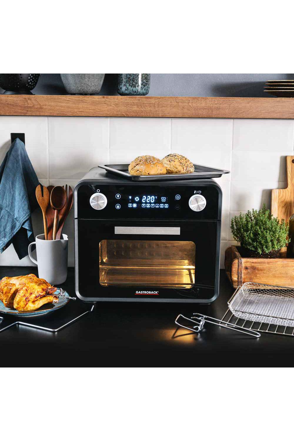Multifunction oven with 22 L capacity and 3 shelves. Compact: fits in (almost) every kitchen, office, camping and mobile home kitchen