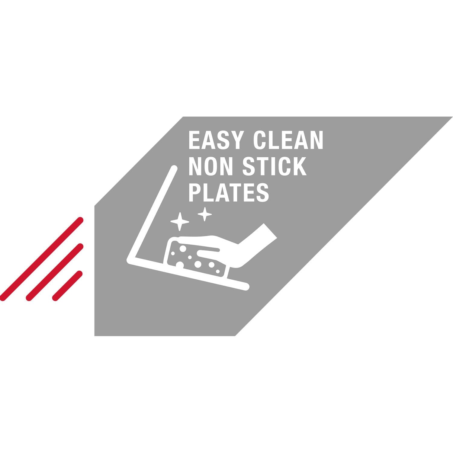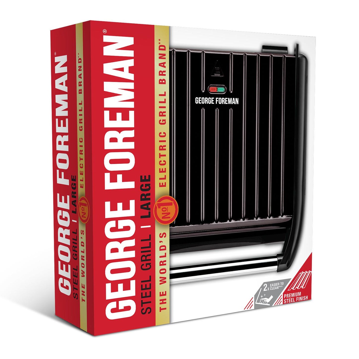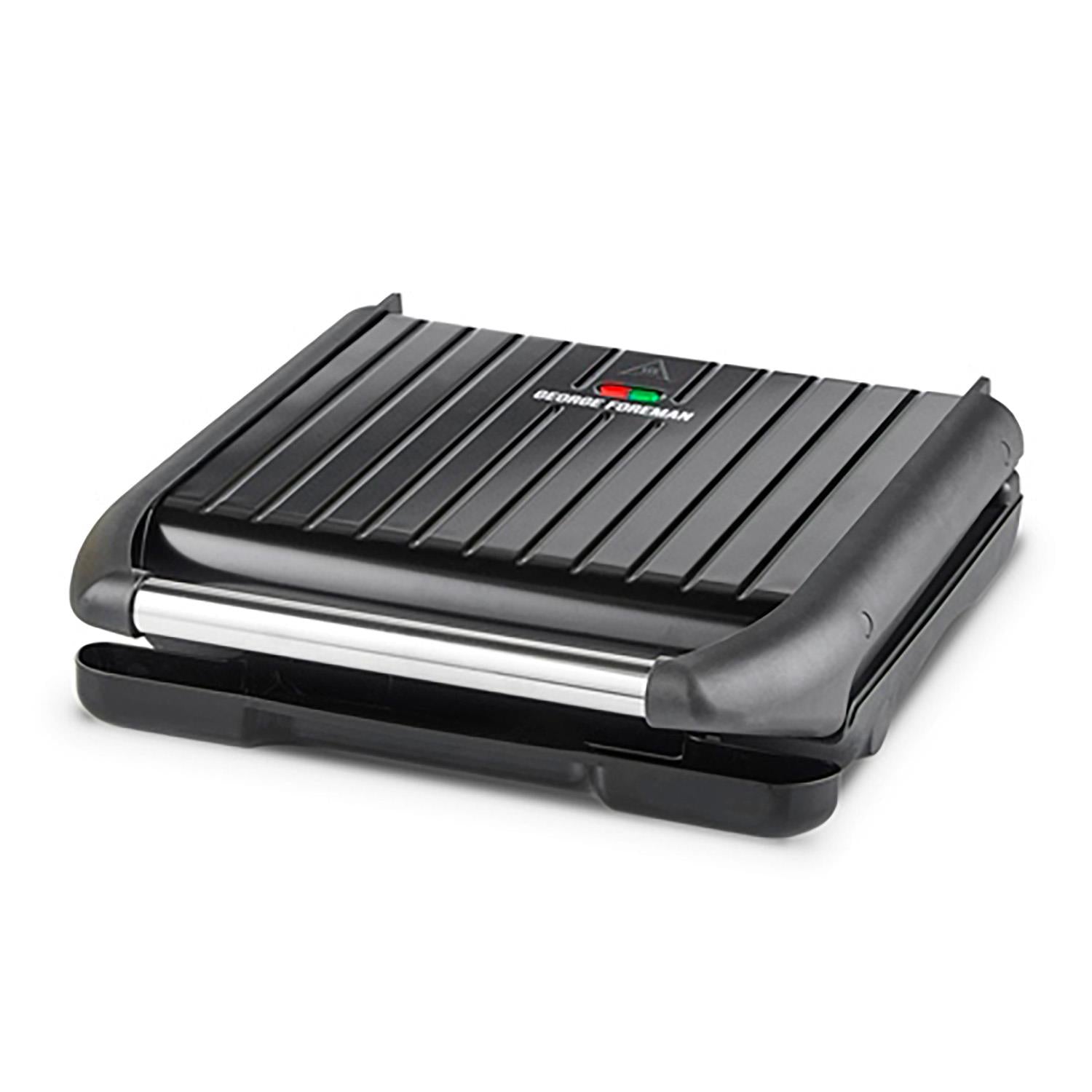 The GEORGE FOREMAN 25052 Health Grill is perfect for large gatherings and entertaining. With a 7 portion capacity, it is ideal for cooking up a variety of meals. This grill and griddle pan combo operates on an electric power source with a voltage of 240V and a power of 1850W. This model features a sleek black design and is equipped with a manufacturer warranty of 2 years. Whether you want to grill meats or veggies, this appliance is perfect for adding healthy options to your diet. Improve your cooking experience and enjoy delicious meals with this versatile health grill. Premium steel finish: This grill isn't just a cooking tool. Its a good-looking bit of kit, a sleek and sophisticated supermodel that'll make any counter look chic.Vertical storage: Short on space? No problem. Designed to be stored upright, this grill can fit into every and any kitchen, no matter how tight storage is. Easy clean, non stick plates. Remove up to 42% fat*. Adjustable rear foot. Floating hinge for thicker cuts.