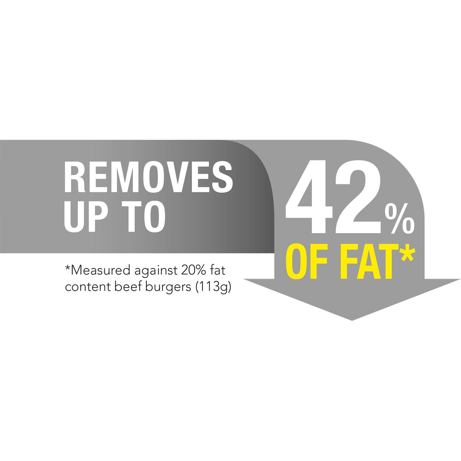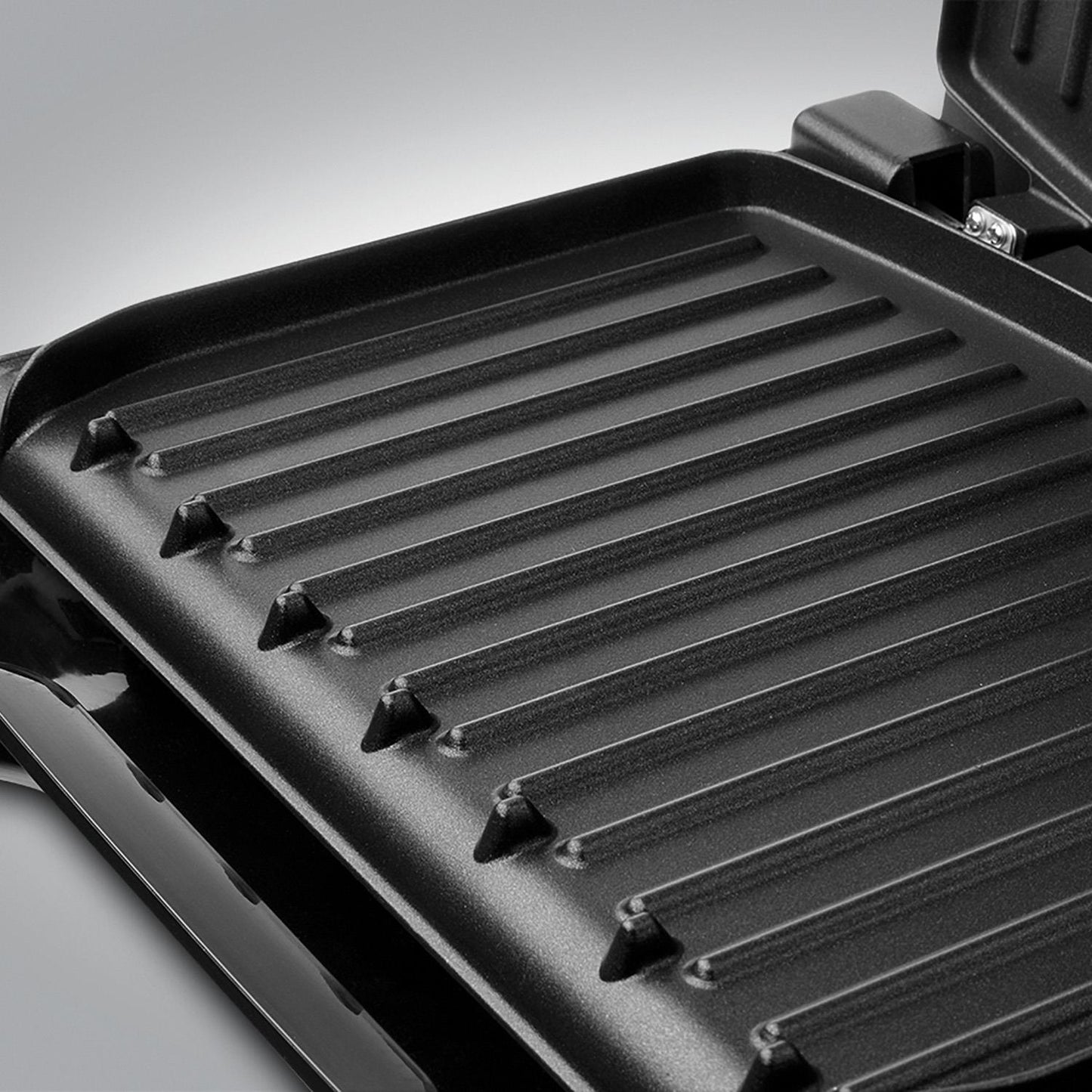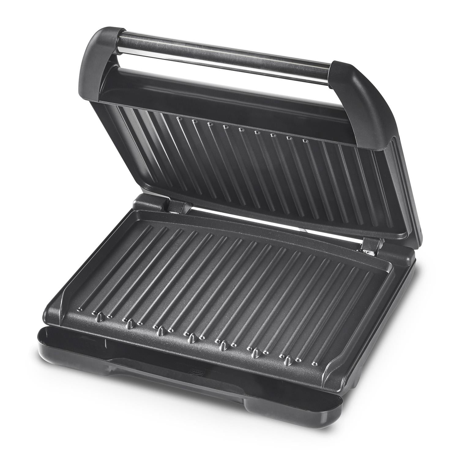 The GEORGE FOREMAN 25052 Health Grill is perfect for large gatherings and entertaining. With a 7 portion capacity, it is ideal for cooking up a variety of meals. This grill and griddle pan combo operates on an electric power source with a voltage of 240V and a power of 1850W. This model features a sleek black design and is equipped with a manufacturer warranty of 2 years. Whether you want to grill meats or veggies, this appliance is perfect for adding healthy options to your diet. Improve your cooking experience and enjoy delicious meals with this versatile health grill. Premium steel finish: This grill isn't just a cooking tool. Its a good-looking bit of kit, a sleek and sophisticated supermodel that'll make any counter look chic.Vertical storage: Short on space? No problem. Designed to be stored upright, this grill can fit into every and any kitchen, no matter how tight storage is. Easy clean, non stick plates. Remove up to 42% fat*. Adjustable rear foot. Floating hinge for thicker cuts.