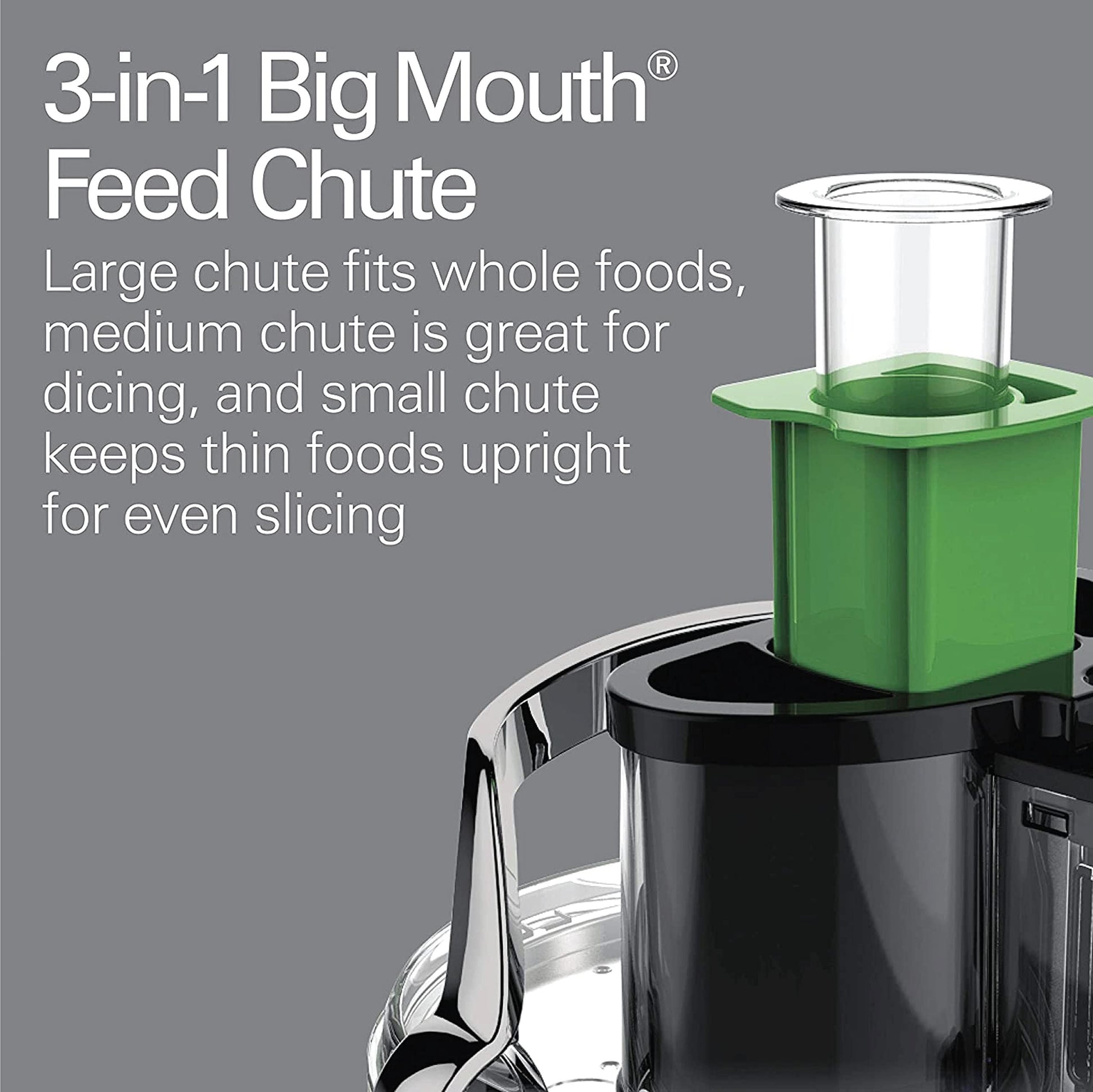 3-in-1 Big Mouth feed tube - Large tube fits whole foods for less pre-cutting and 2 smaller tubes hold thin foods upright.