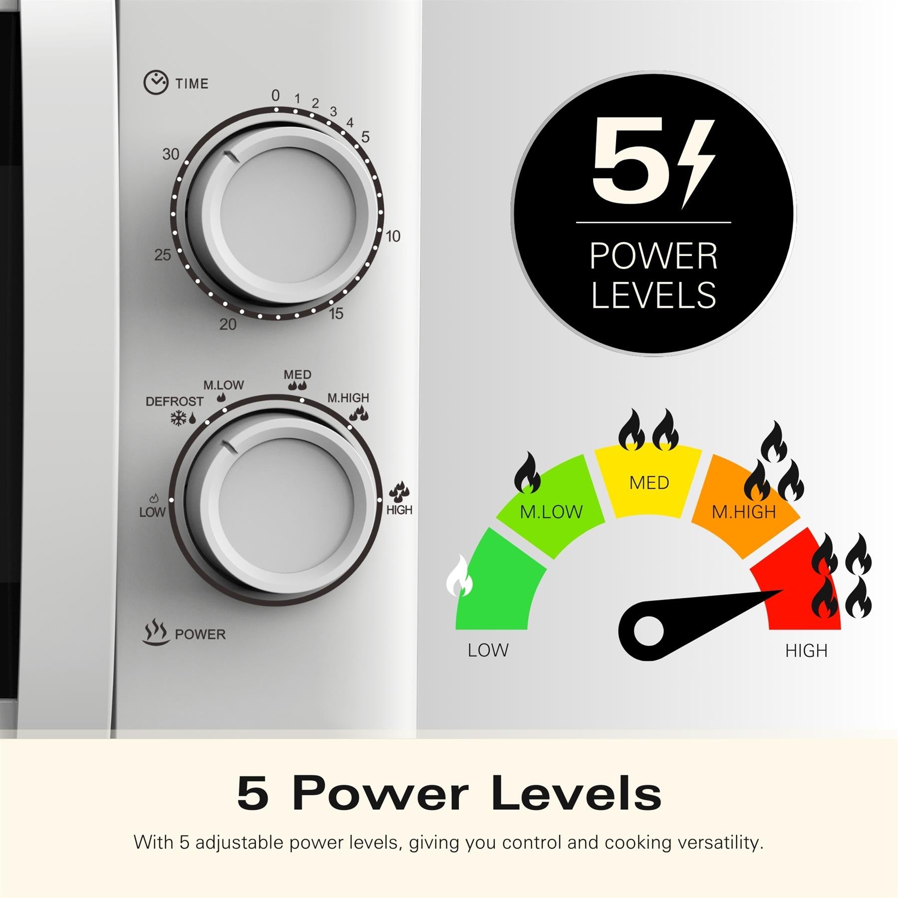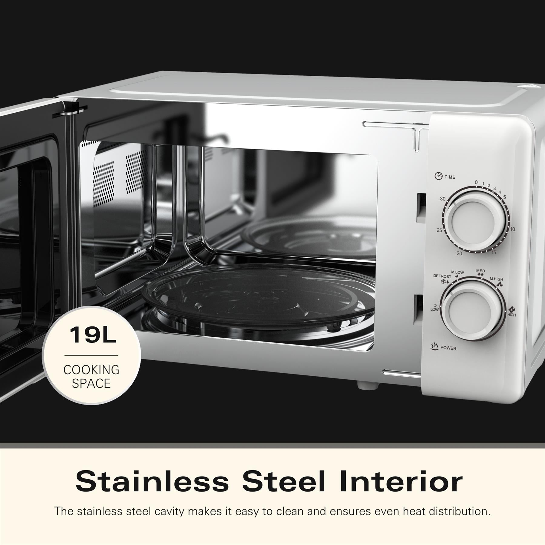 The sleek and modern 20L White Microwave combines style, functionality, and durability, making it the ideal kitchen companion for any home. With a stainless steel cavity for easy cleaning and even heat distribution, this microwave is built to last and looks great in any setting. Despite its compact design, the spacious 19L interior is perfect for family meals or quick snacks, while 700W of power and five adjustable cooking levels give you full control to prepare everything from popcorn to hot drinks with ease. The quick defrost function is a lifesaver for those times when you forget to thaw ingredients, letting you go from frozen to ready in seconds. The simple, intuitive controls and neutral white finish make this microwave a versatile addition to any kitchen, blending in seamlessly.