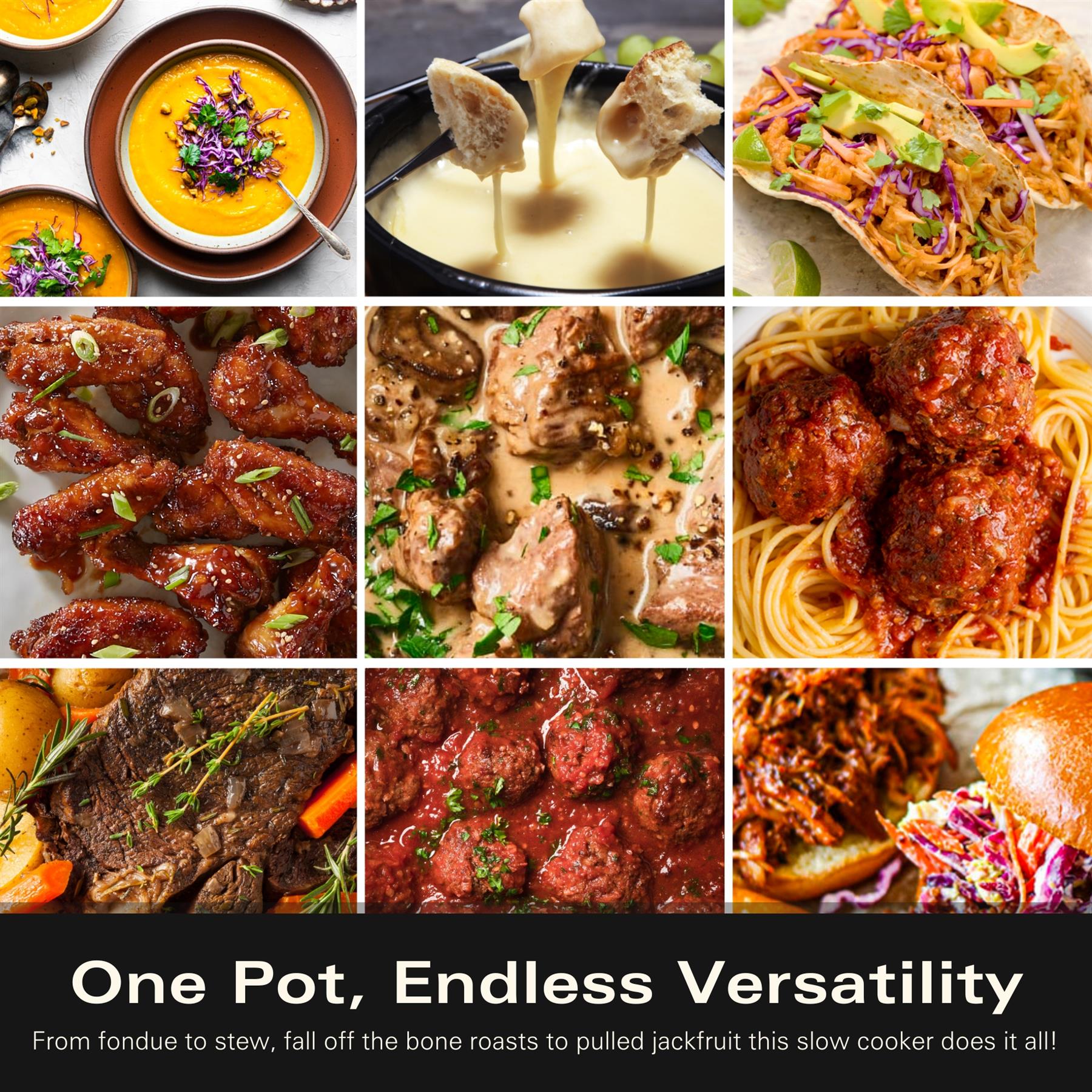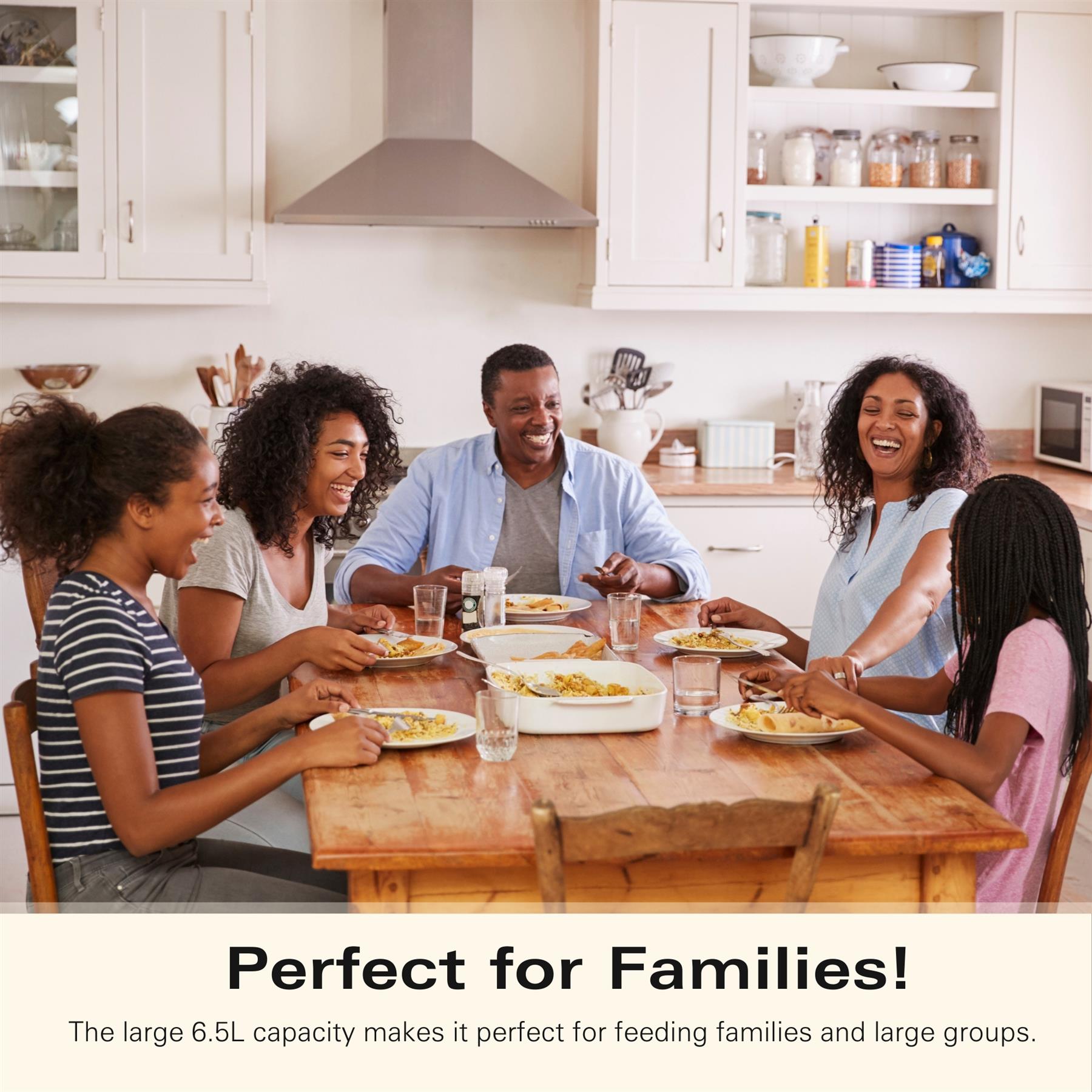 Elevate your cooking with the Hamilton Beach 6.5L Digital Oval Slow Cooker in Black. Designed for large households and entertaining, this slow cooker features a generous 6.5L capacity, perfect for making hearty meals like casseroles, curries, soups, and stews. Its size allows for direct serving from the pot, eliminating the need for extra dishes and making mealtime hassle-free. User-friendly digital controls offer easy meal planning with a programmable LCD display for precise cooking times and temperatures. Choose from three settings—High, Low, and Keep Warm. The Keep Warm function automatically activates after cooking, keeping your meal at the ideal temperature until you're ready to serve. With a sleek matt black iron exterior and a durable glass lid, this slow cooker combines style with practicality. The removable black ceramic pot is perfect for serving and easy to clean, while the fixed power cord ensures a clutter-free kitchen. Advanced cooking functions include Delay, Cooking, High, Low, and Warm settings, allowing you to customise your cooking process. A blue indicator light keeps you informed of the slow cooker's status at a glance. Cleaning up is a breeze with dishwasher-safe components. Whether you're cooking a family dinner or hosting a party, the Hamilton Beach 6.5L Digital Oval Slow Cooker offers convenience, style, and excellent performance for all your slow-cooking needs.