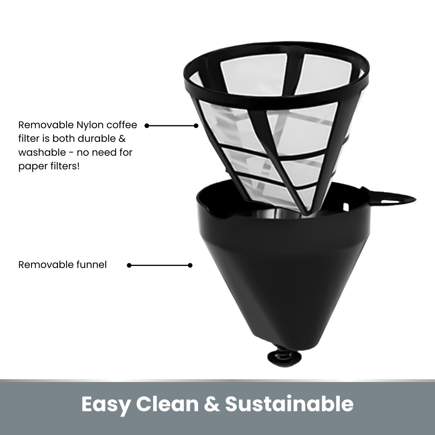 - Removable Filter - Removable Nylon coffee filter is both durable and washable - no need for paper filters!