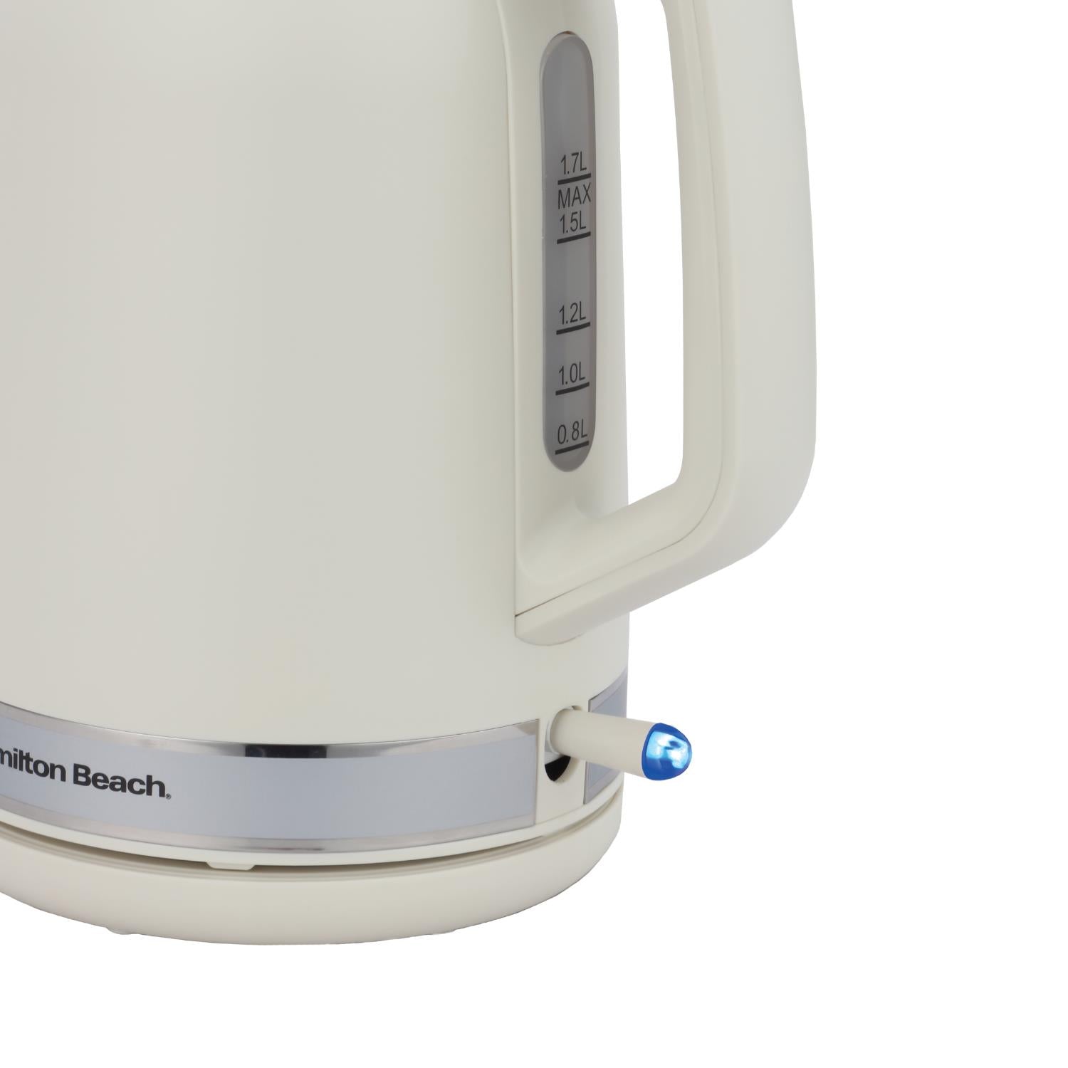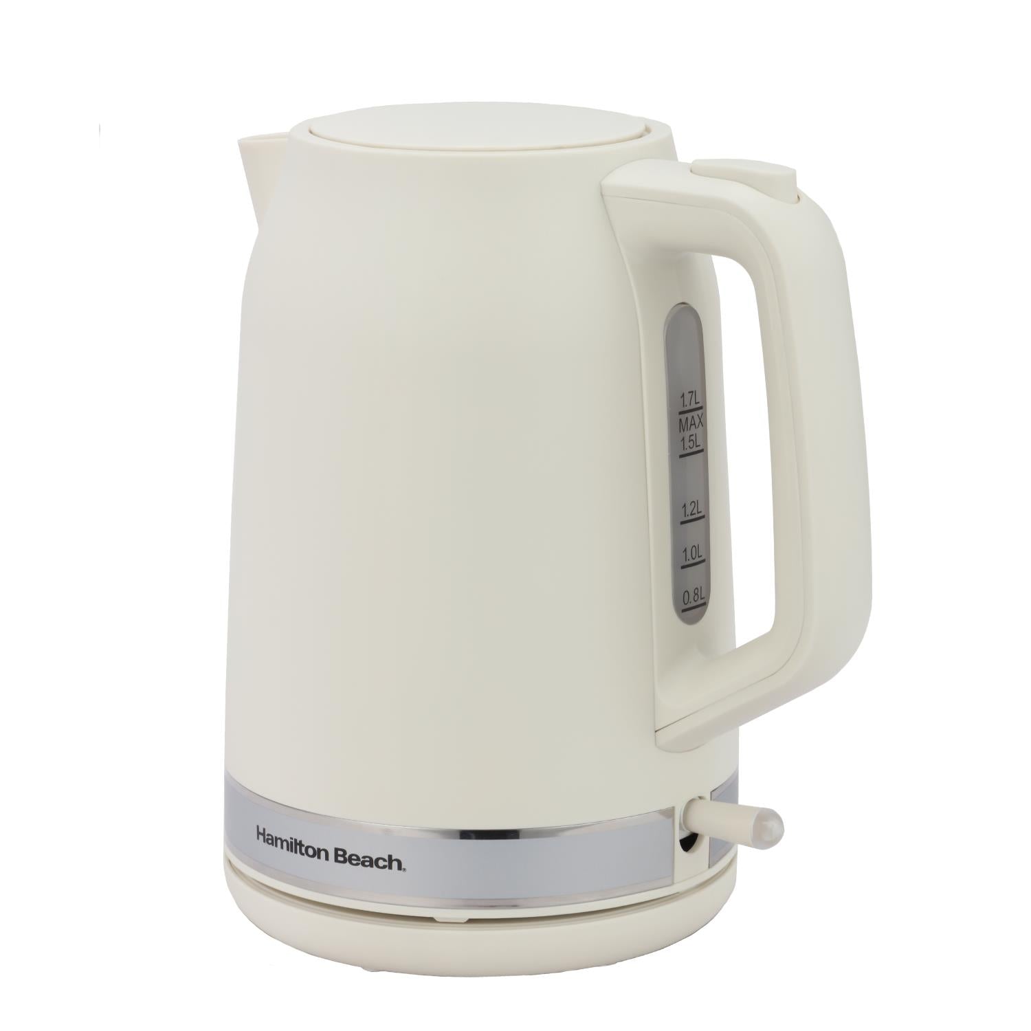 Discover the Hamilton Beach Ella 1.7L Latte Kettle – a stylish addition to your kitchen with a large capacity perfect for family households. Featuring boil dry protection, automatic switch-off, and a detachable filter for easy cleaning, this kettle prioritises safety and maintenance. Its ergonomic design includes a comfortable lift-and-grip handle and a water level window for added convenience. The sleek matte latte plastic housing adds a touch of modern style to any kitchen.
