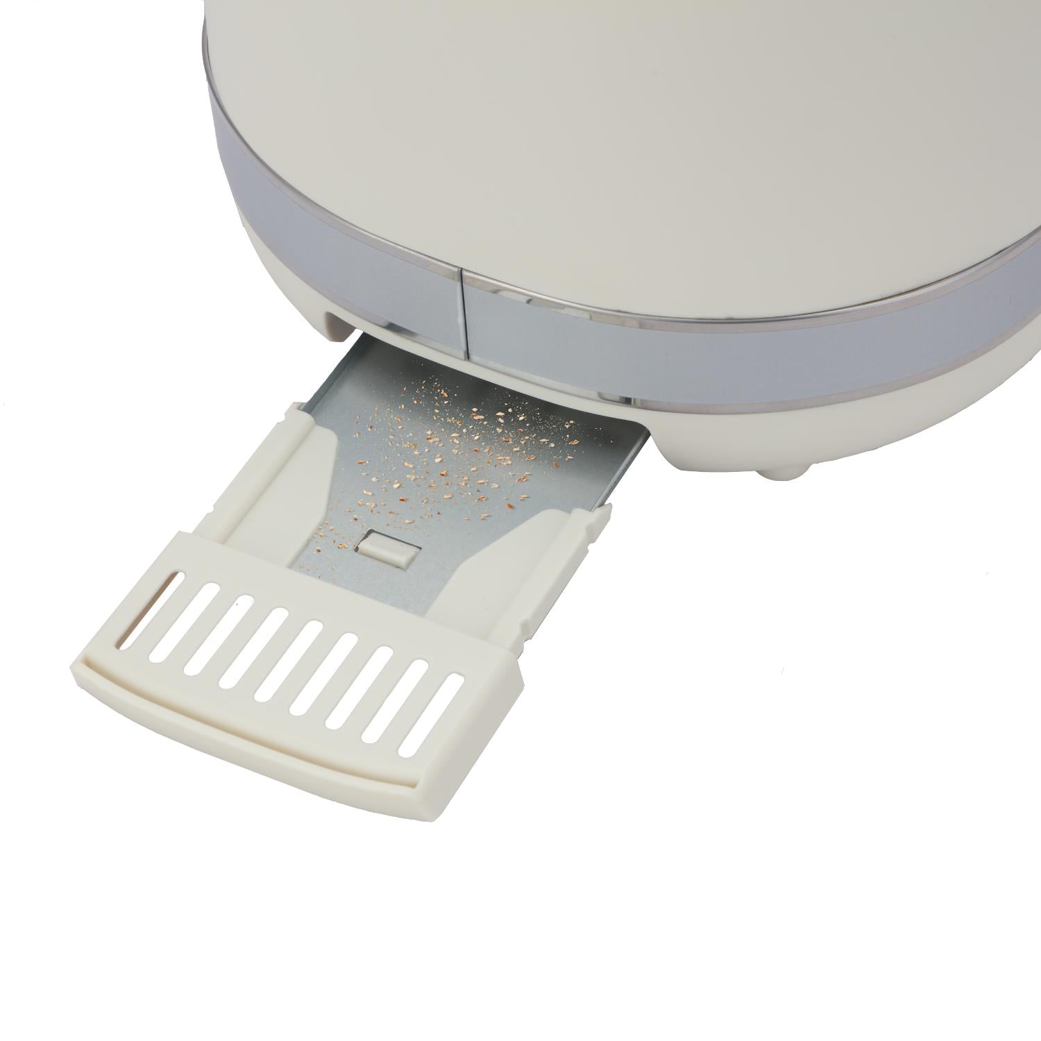 - Ella 2 Slice Toaster: With 7 variable browning levels, choose your perfect toast effortlessly. The removable crumb tray and integrated cord storage ensure easy cleaning and a tidy workspace. Enjoy even and crisp toasting with 800W power, and the wide slots are ideal for thick-sliced bread and bagels. The modern design, featuring sleek matte plastic housing, adds a stylish touch to any kitchen. Benefit from the convenient defrost, cancel and reheat settings.