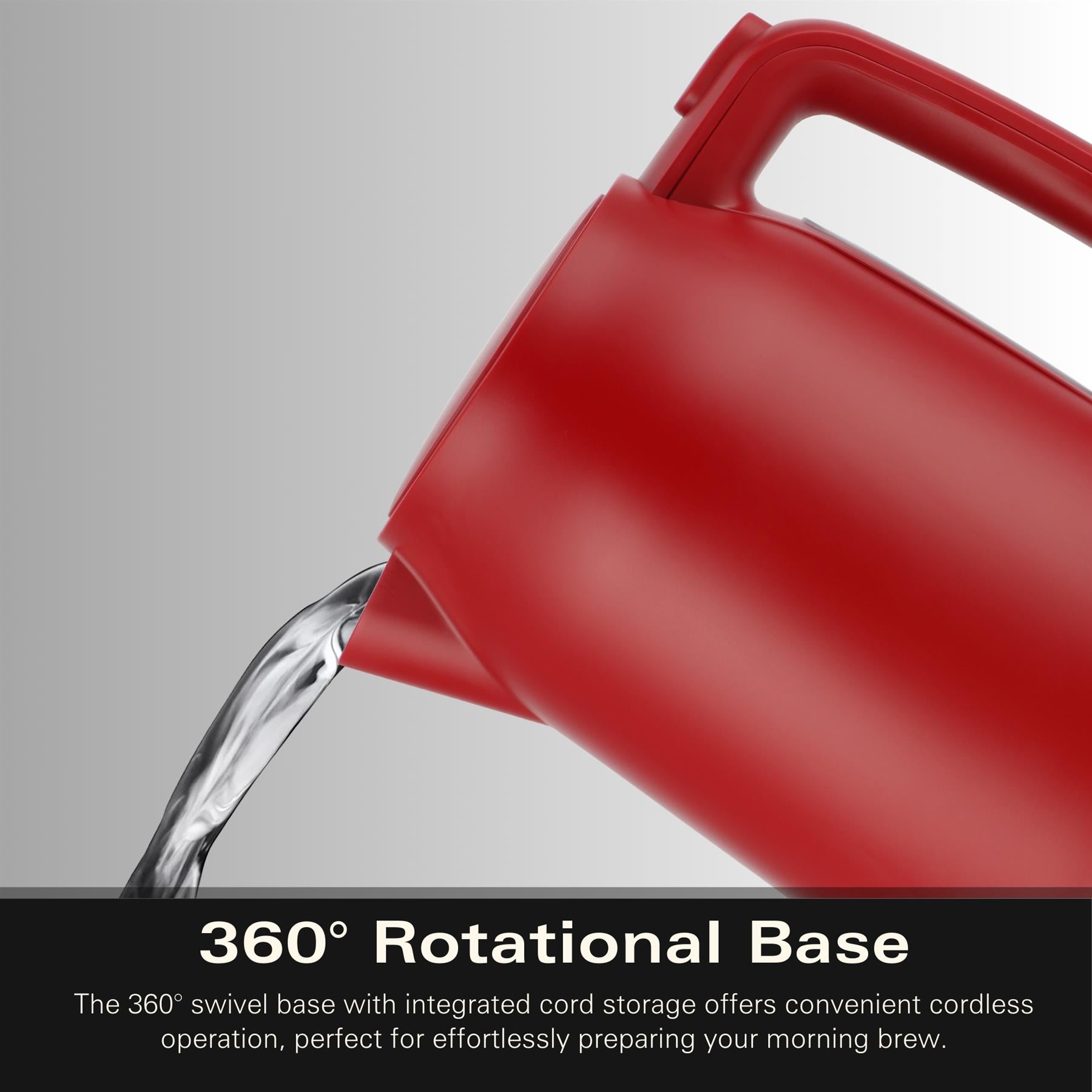 Discover the Hamilton Beach Ella 1.7L Kettle – a stylish addition to your kitchen with a large capacity perfect for family households. Featuring boil dry protection, automatic switch-off, and a detachable filter for easy cleaning, this kettle prioritises safety and maintenance. Its ergonomic design includes a comfortable lift-and-grip handle and a water level window for added convenience. The sleek matte red plastic housing adds a touch of modern style to any kitchen. Safety assured with UK Strix technology for long lasting protection