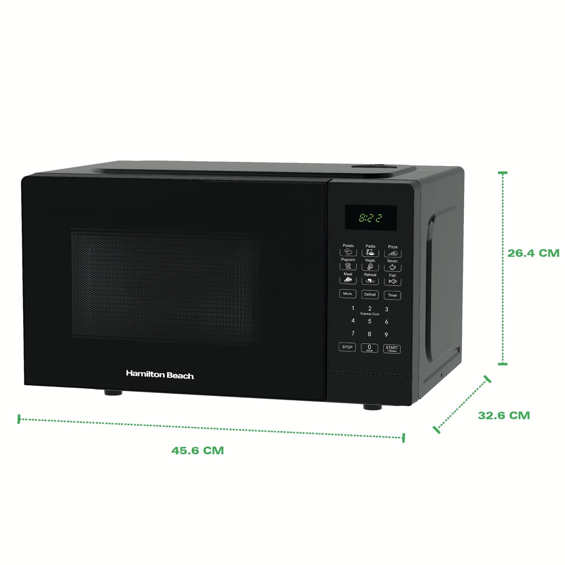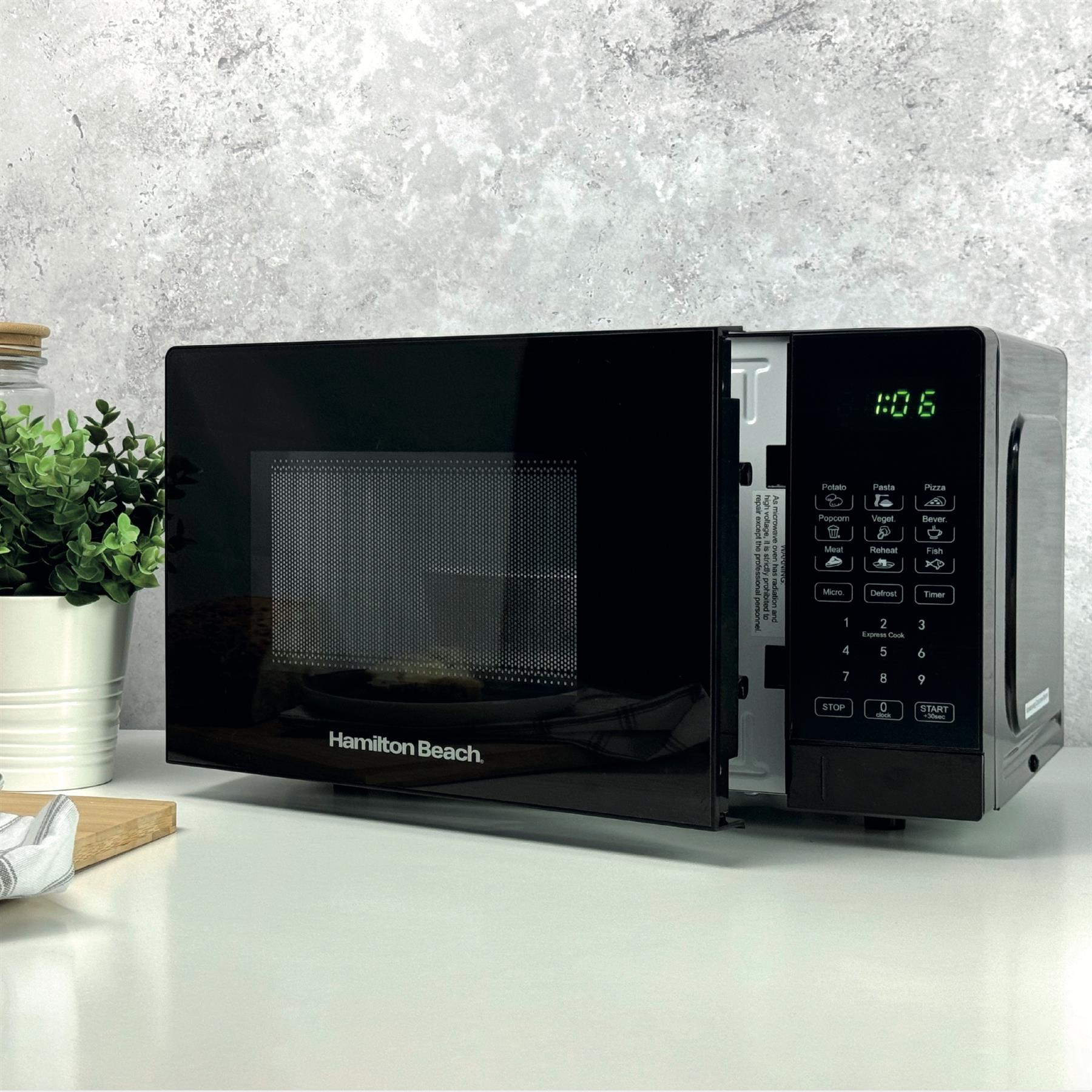 - Effortless Cooking: The Hamilton Beach Essential 20L Black Digital Microwave has intuitive controls and LED display for easy operation. The Essential microwave is designed to save space with its compact 20L capacity it can fit seamlessly on to any countertop.