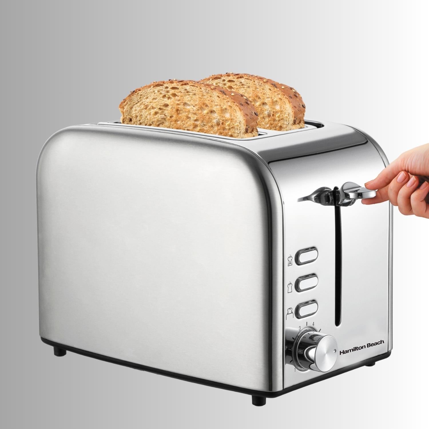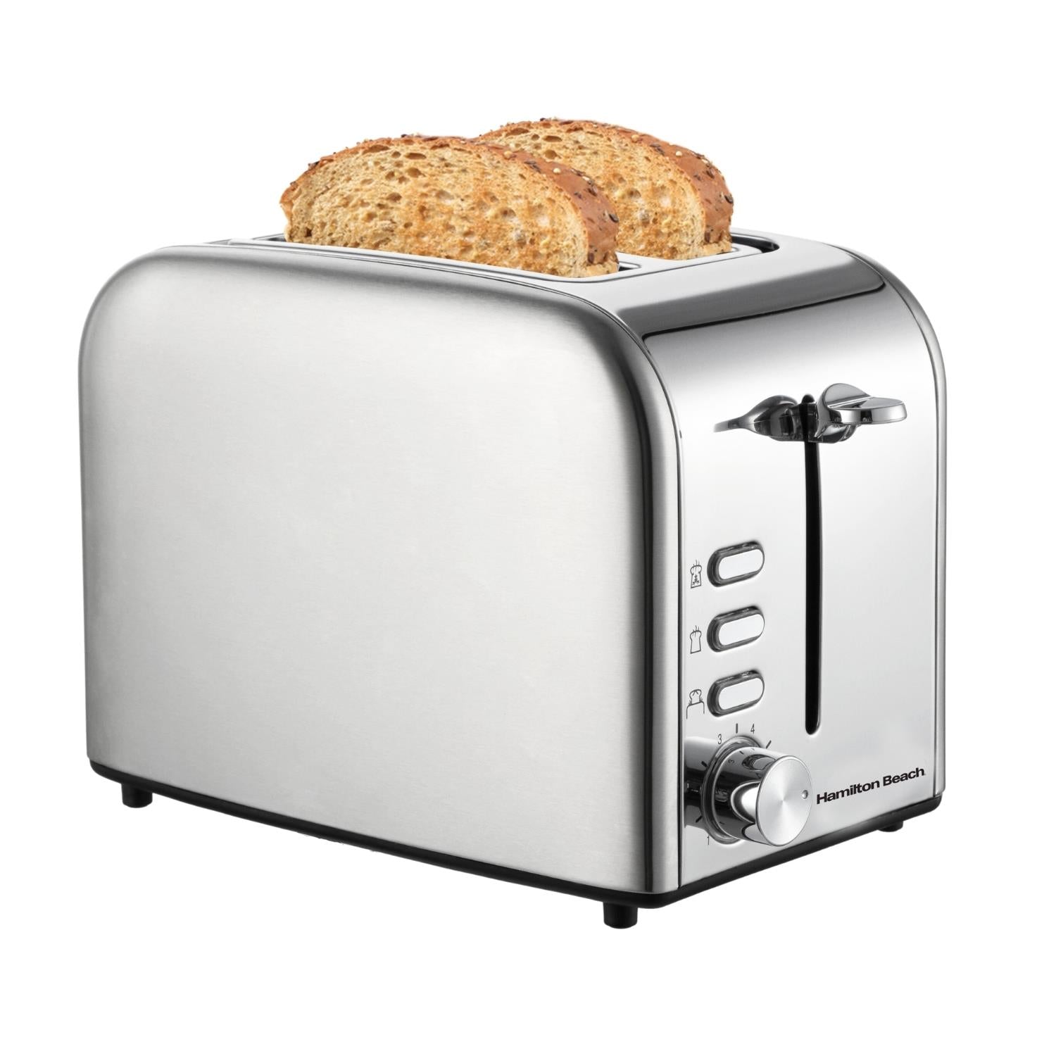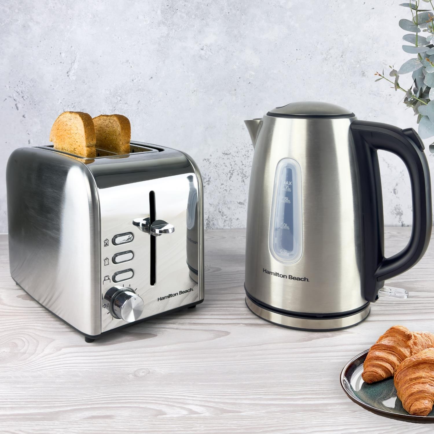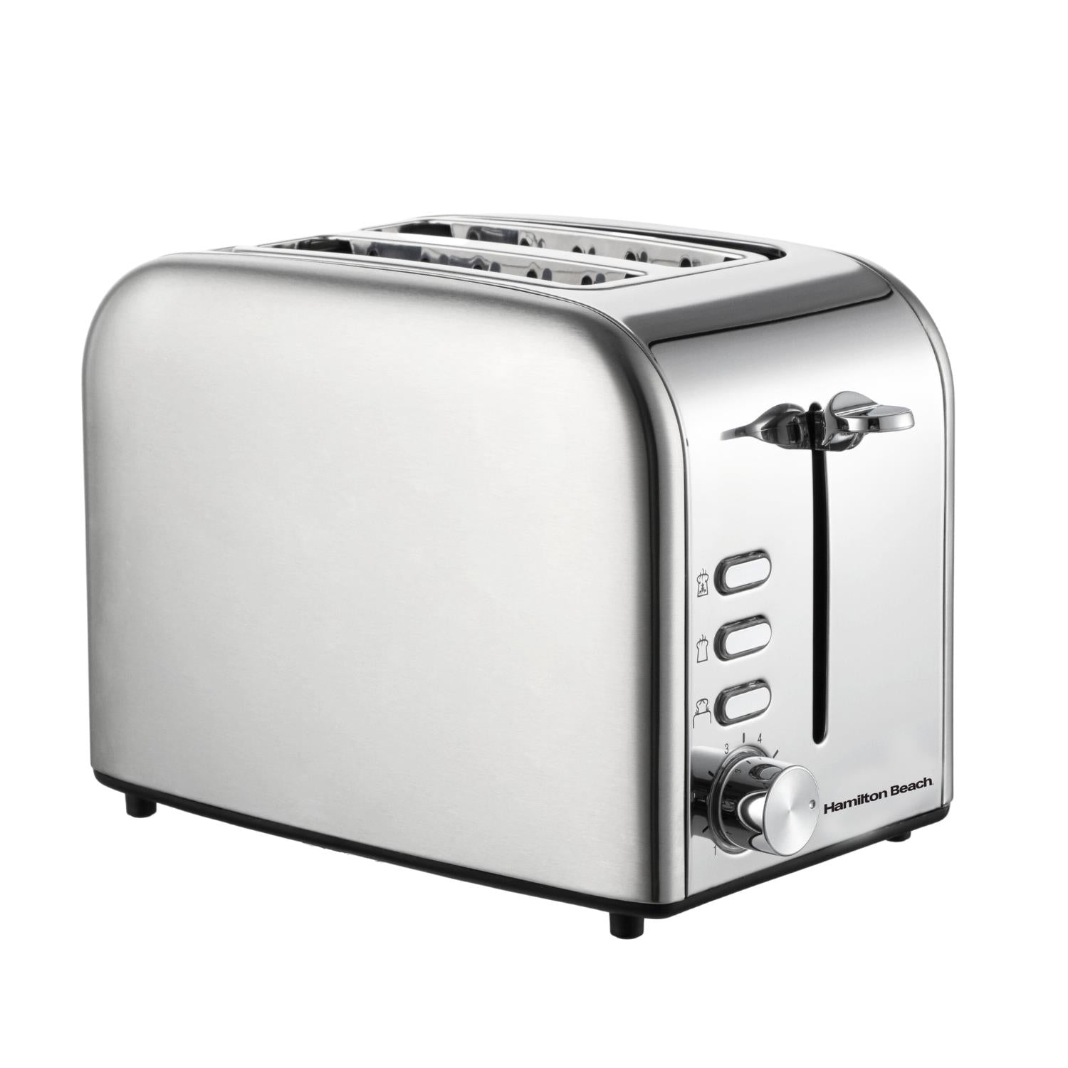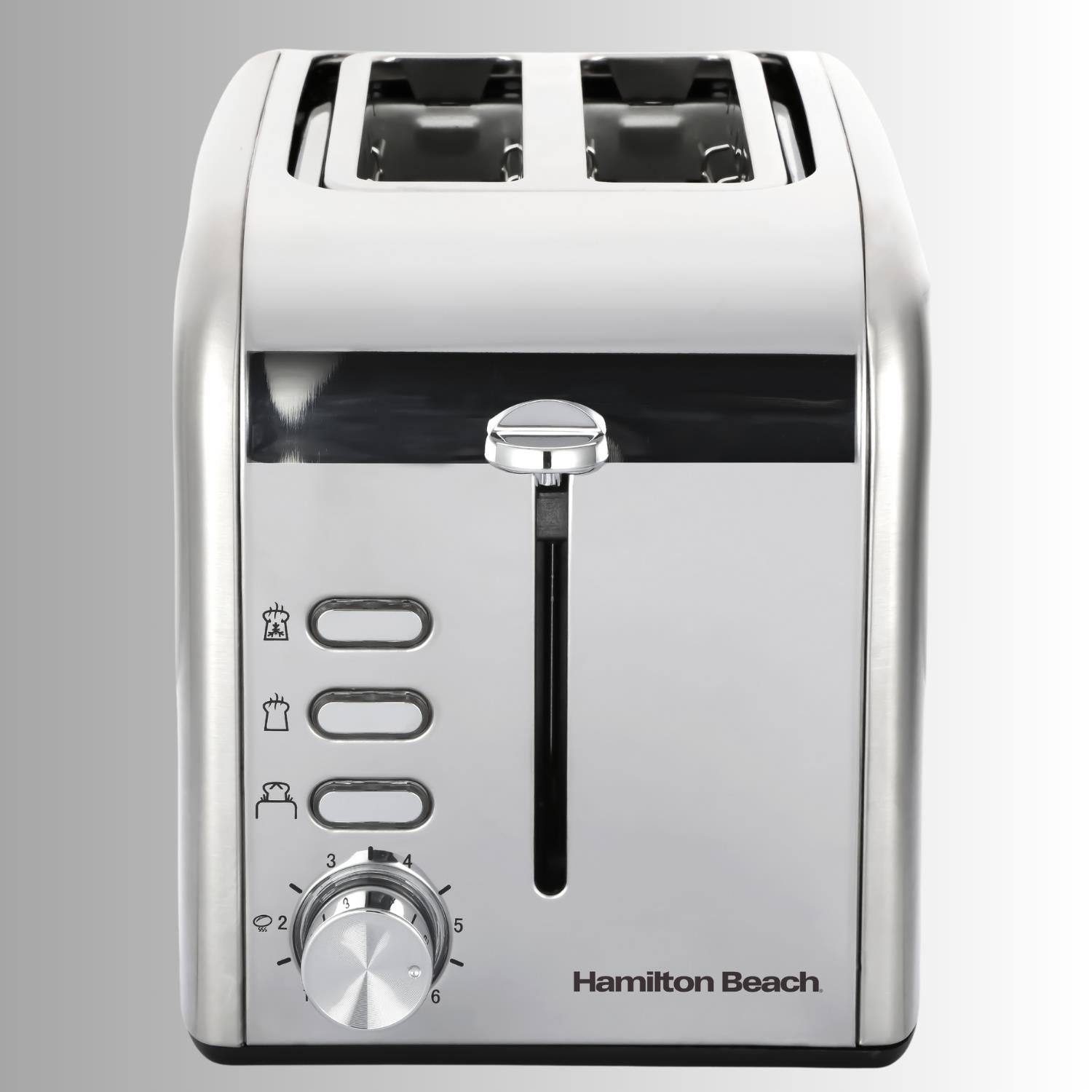 Kickstart your mornings with the Hamilton Beach Rise 2-Slice toaster. Combining premium brushed and polished stainless steel features and compact modern design, this toaster brings style and durability to your kitchen.