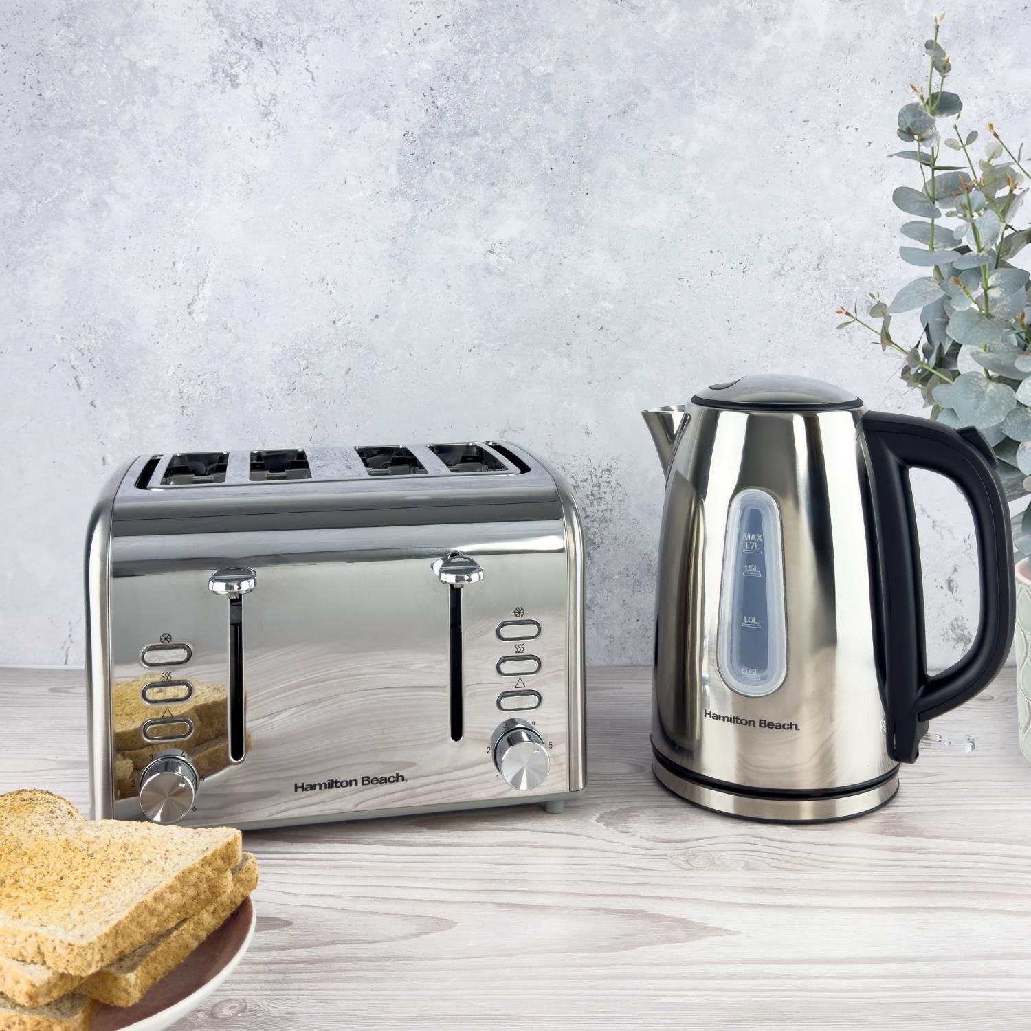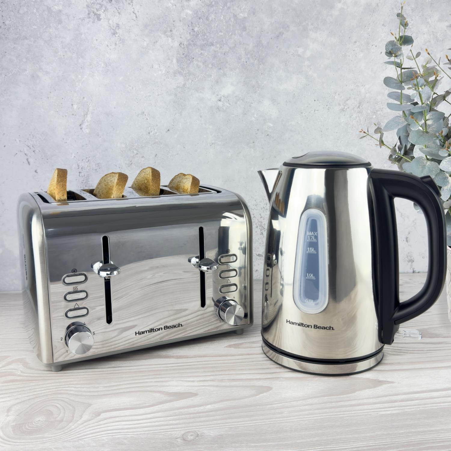 Kickstart your mornings with the Hamilton Beach Rise 2-Slice toaster. Combining premium brushed and polished stainless steel features and modern design, this toaster brings style and durability to your kitchen. Achieve toast perfection every time with the variable browning control. Customise the level of crispiness to suit your taste and enjoy perfect toast just the way you like it. Plus to make your life easier, the removable crumb tray takes care of any mess and is easy to clean. Say goodbye to waiting around and start your mornings with perfectly toasted bread in no time – powered by 850W so you can enjoy quick and efficient toasting always. Plus cancel, reheat and defrost settings for total control — mornings just got easier. 4-Slice Capacity – Cook up to 4 slices of bread at a time — ideal for larger households. Variable Browning Control – 6 levels of browning — perfect toast just the way you like it, every time. Modern Design – Premium brushed and polished stainless steel design – a durable and and stylish addition to your kitchen. Removable Crumb Tray – Mess free, and easy to clean. Matching Kettle – Pair this toaster with the Rise 1.7L Brushed or Polished Kettle.