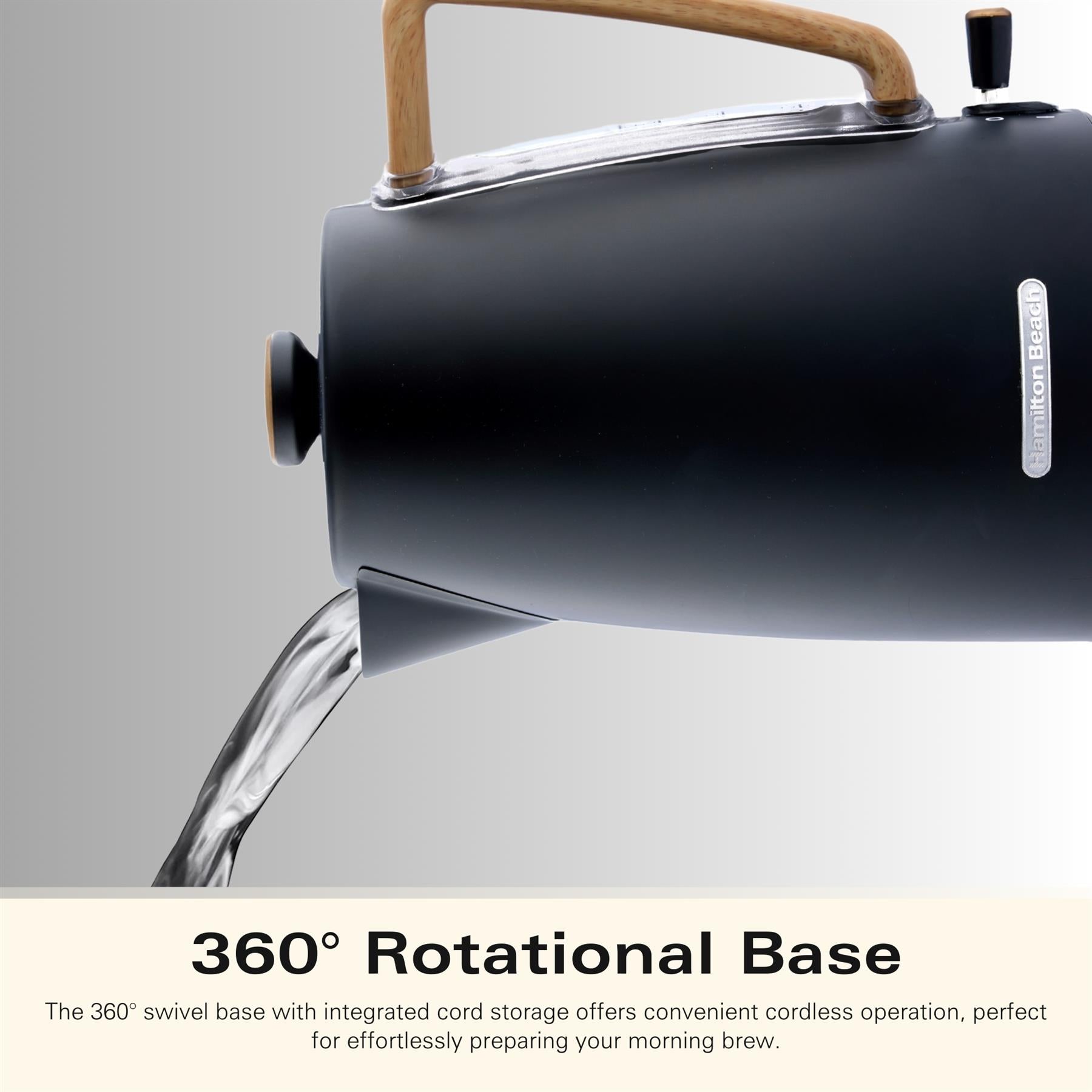 Hamilton Beach Scandi 1.7L Kettle Matte Black with Wood Effect