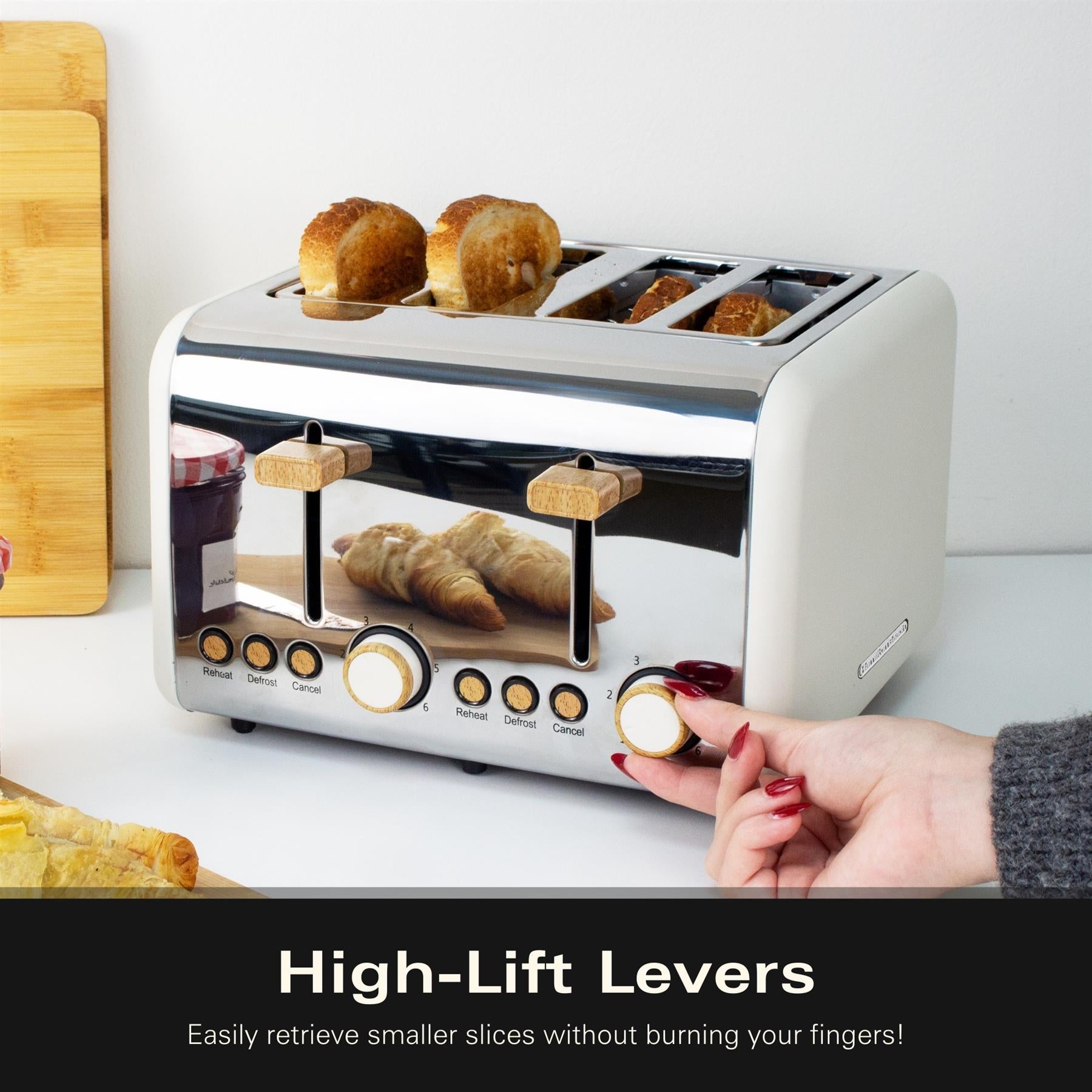 Hamilton Beach Scandi 4 Slice Toaster Matte Cream with Wood Effect