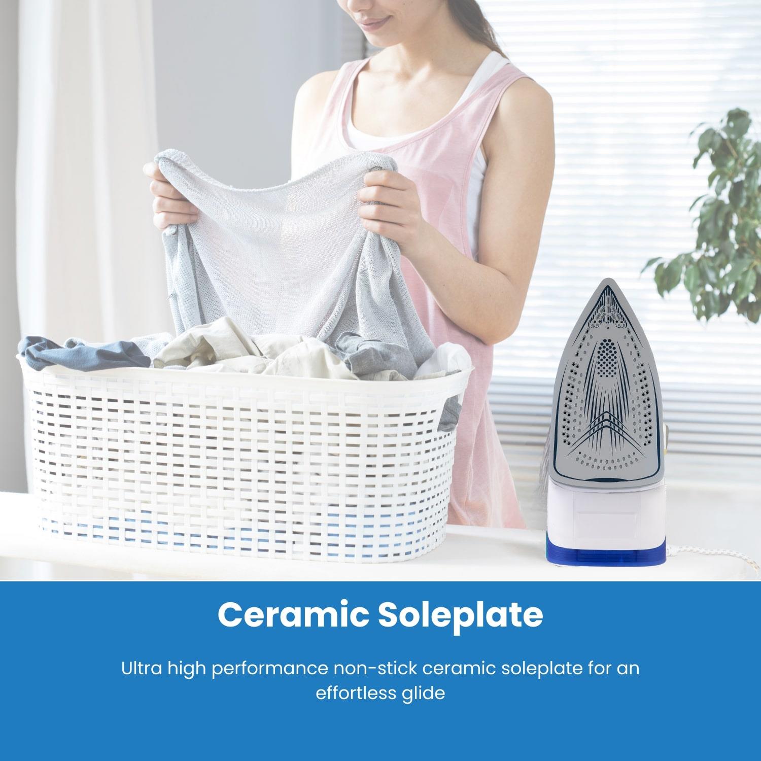 Experience efficient crease removal like never before with the super powerful steam shot, delivering up to 25g/min of steam. Say goodbye to stubborn wrinkles as this iron effortlessly tackles even the toughest creases.The ultra high-performance non-stick ceramic soleplate ensures an effortless glide over fabrics, making ironing a breeze. No more snagging or sticking! Achieve versatile ironing results with the choice between dry or steam ironing. For those stubborn creases, simply use the steam and spritz function to effortlessly remove them, leaving your garments looking fresh and wrinkle-free. Need to tackle curtains or hanging clothes? The Pro SteamMax’s vertical steam feature is here to help. With a generous 1.9m cord, you can easily reach every corner and achieve perfectly ironed curtains or hanging garments.We care about your comfort. That’s why our iron is designed with ergonomic features. The steam and water triggers are within easy reach, ensuring ultimate comfort and convenience during your ironing sessions. We understand the importance of convenience. Our iron features an easy-fill water tank, allowing for hassle-free refills. Additionally, the self-cleaning feature keeps maintenance simple and effortless. Powerful Performance – Up to 25g/min steam shot perfect for efficient crease removal. Ceramic Soleplate – Ultra high performance non-stick ceramic soleplate for an effortless glide. Versatile Ironing –Select from dry or steam ironing — use steam and spritz function to remove stubborn creases. Vertical Steam – Tackles the toughest creases on curtains or hanging clothes easily with 1.9m cord. Ergonomic Features – For ultimate comfort the steam and water trigger are within easy reach. Convenient Design – Easy-fill water tank and self cleaning feature four convenience.